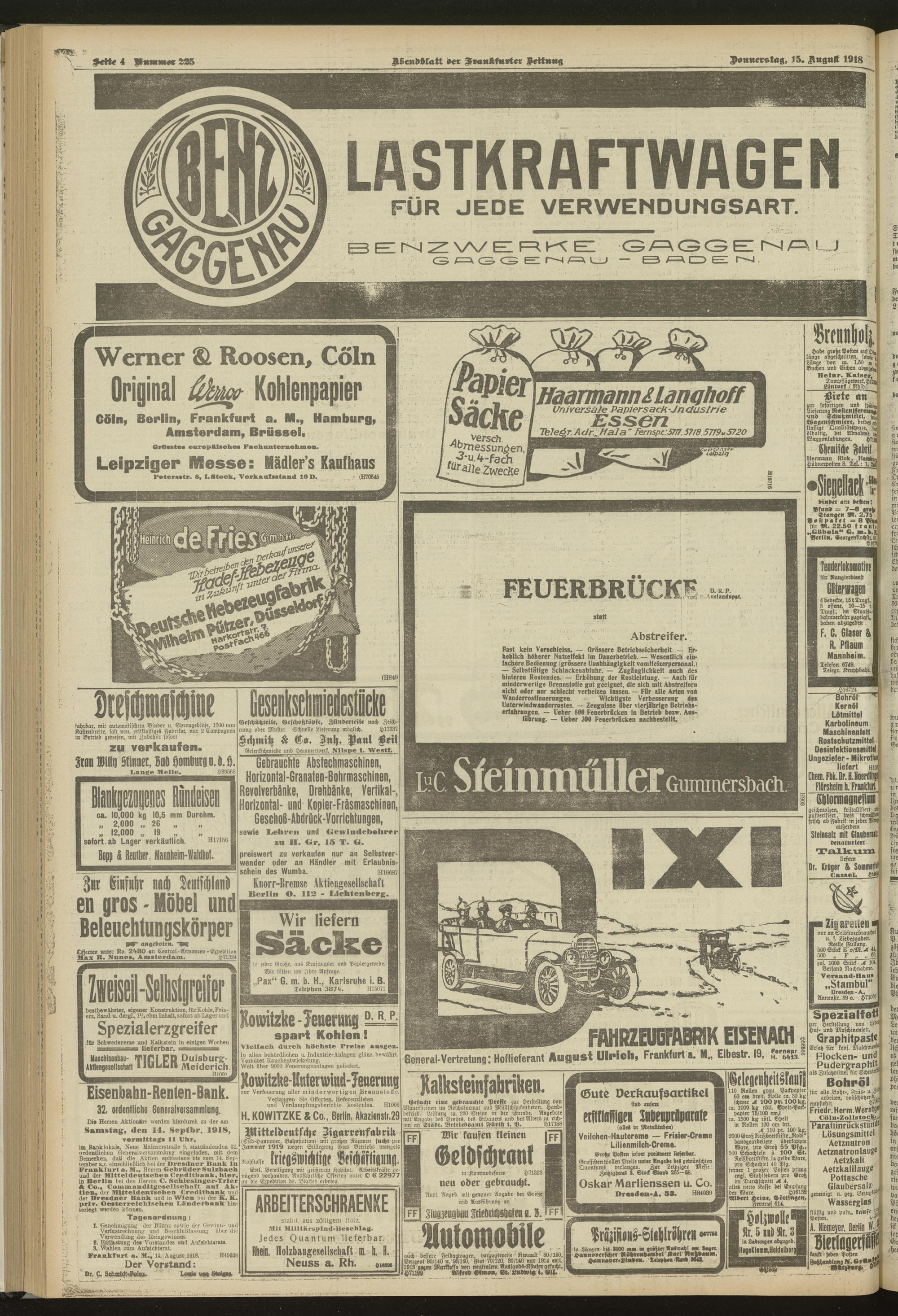 15.08.1918 = Nr. 225. Abendblatt