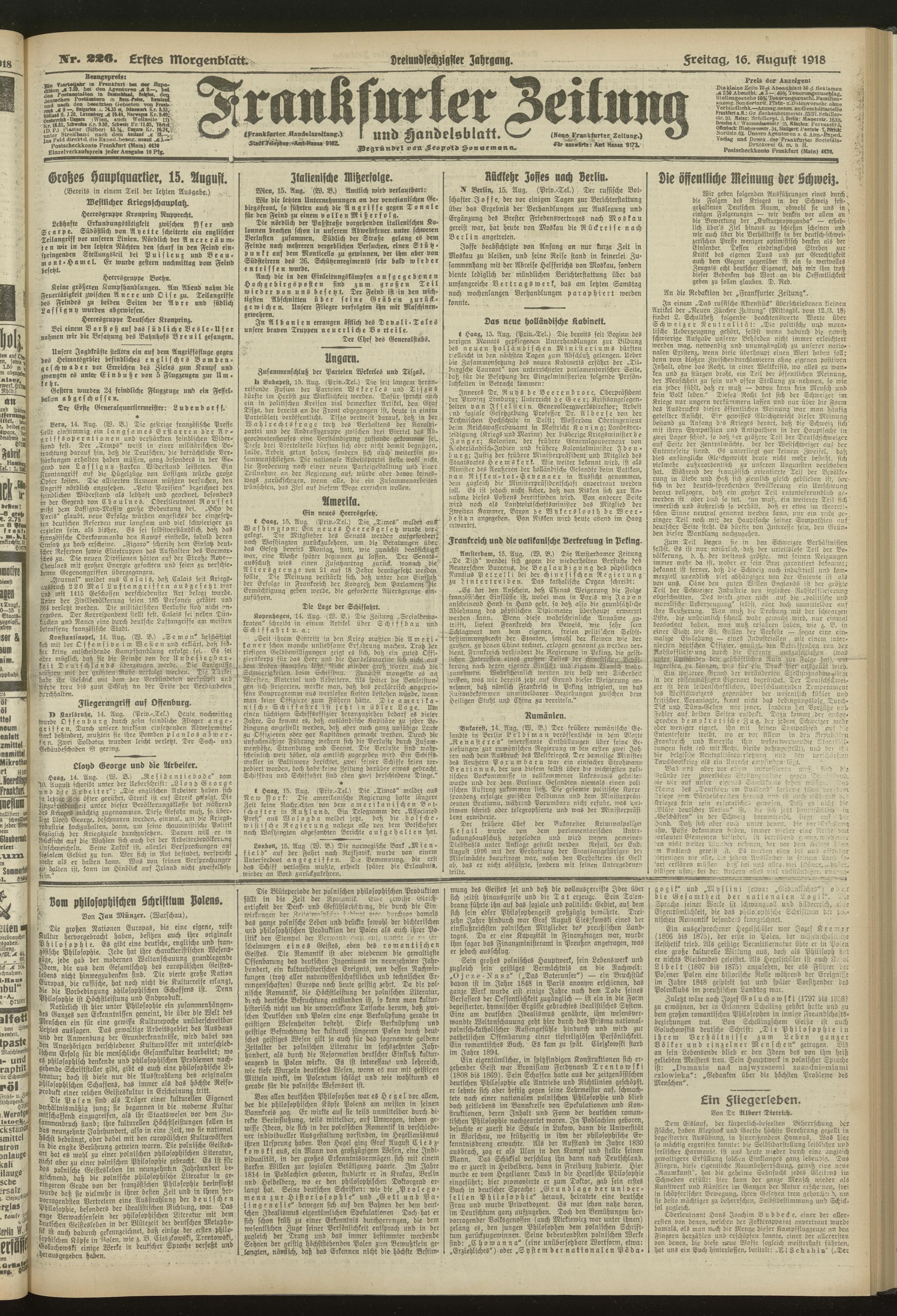 16.08.1918 = Nr. 226. Erstes Morgenblatt