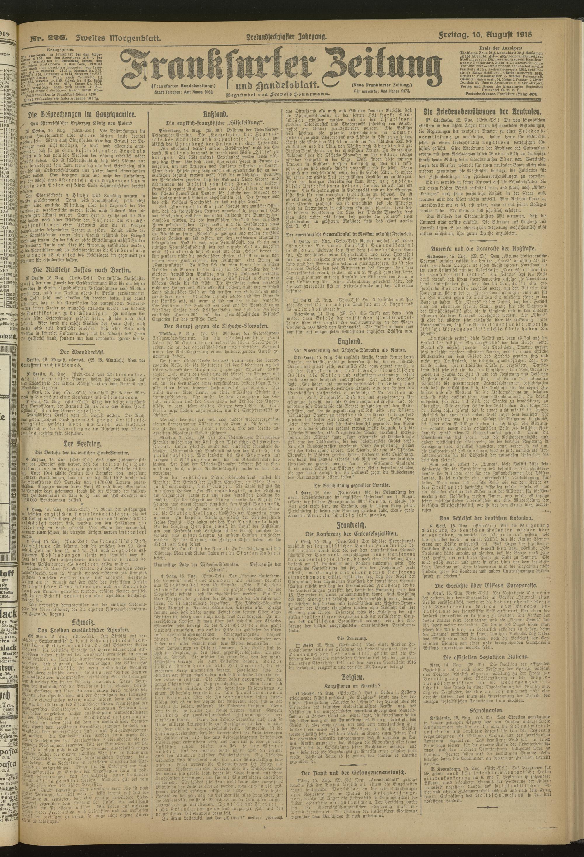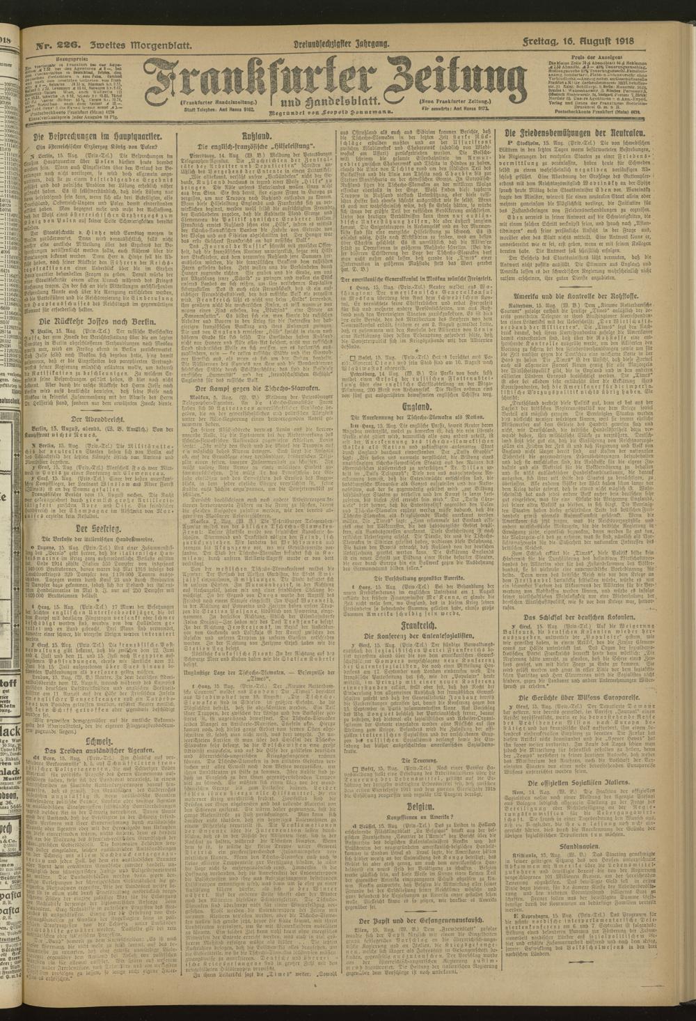 16.08.1918 = Nr. 226. Zweites Morgenblatt