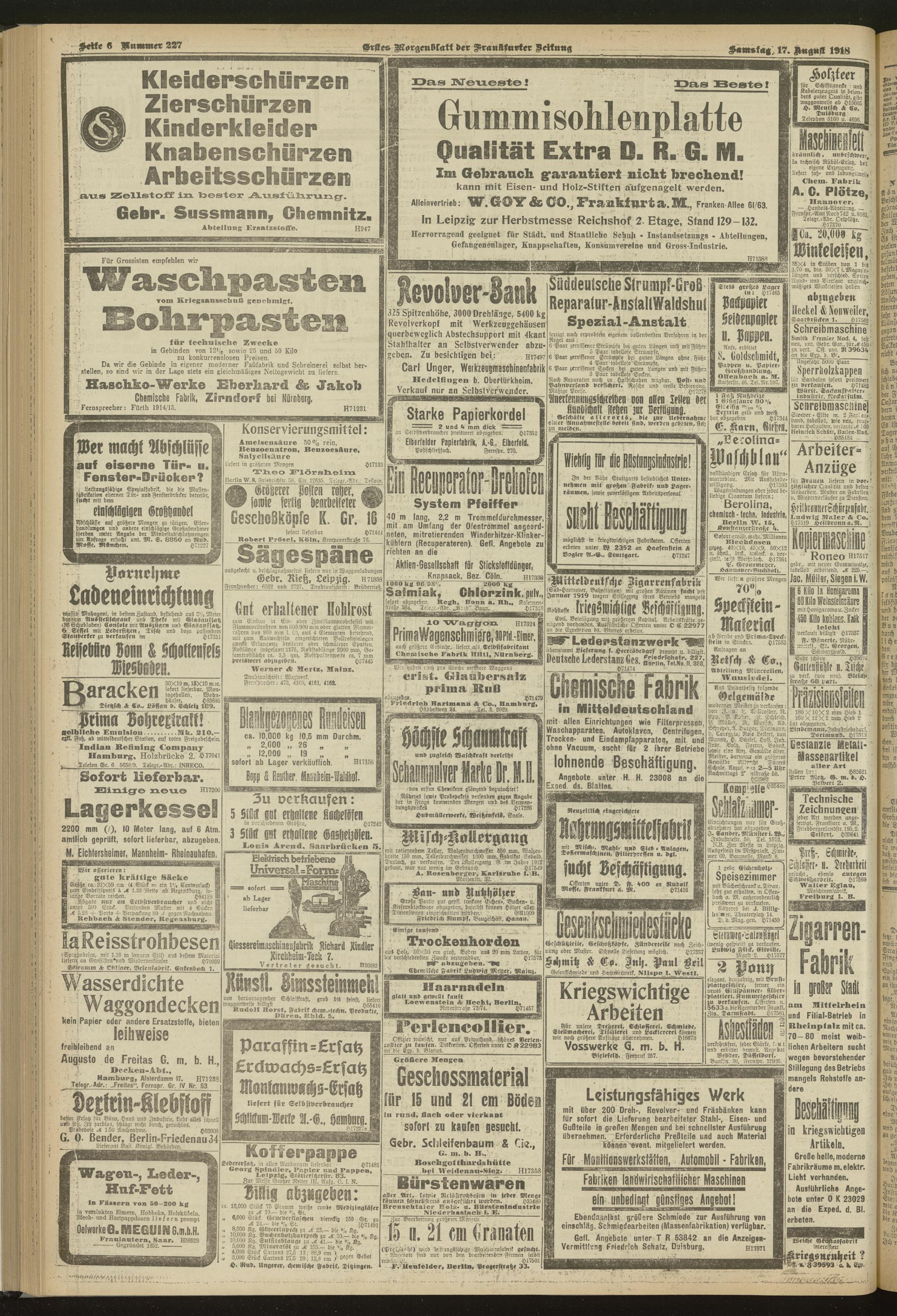 17.08.1918 = Nr. 227. Erstes Morgenblatt