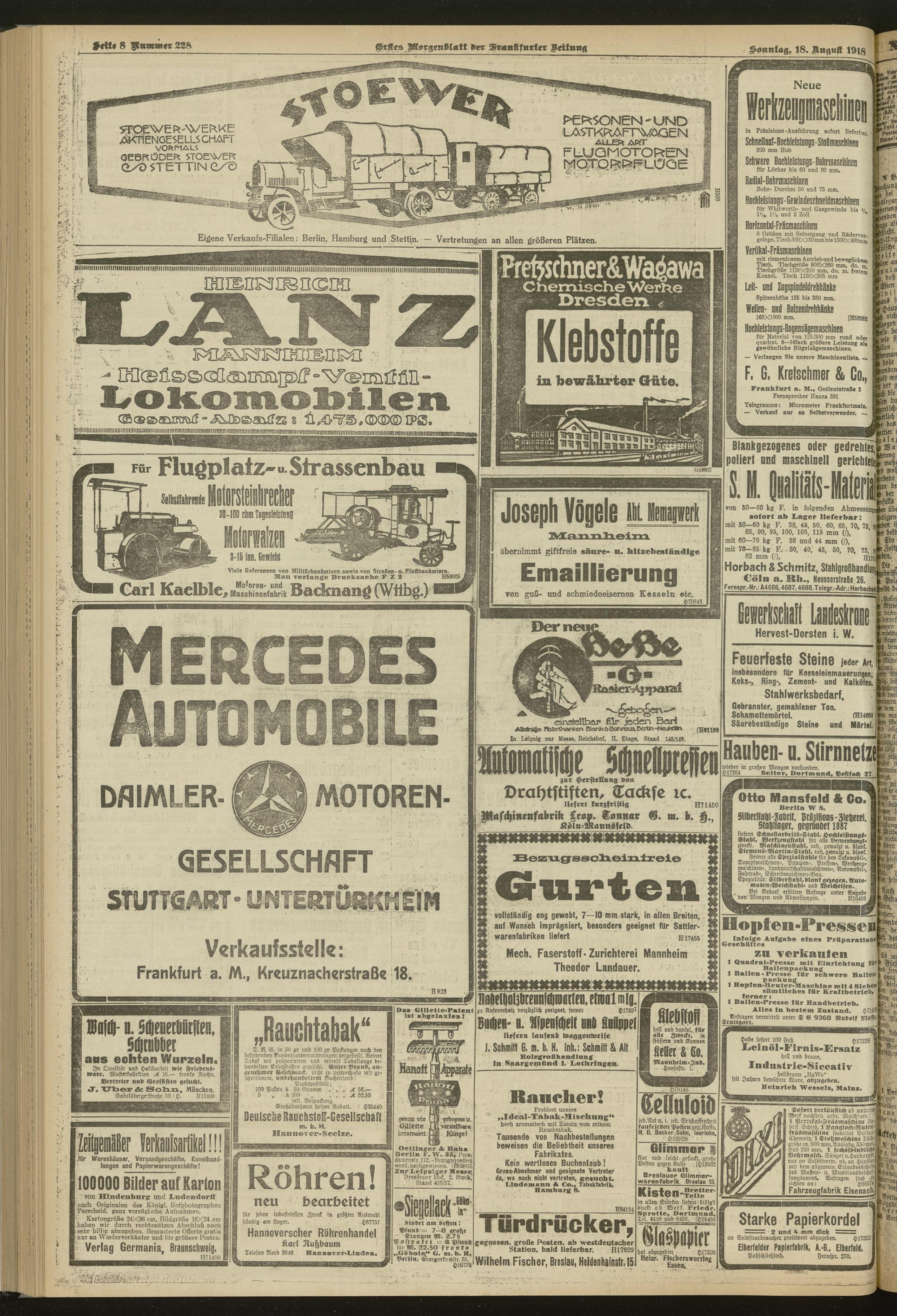 18.08.1918 = Nr. 228. Erstes Morgenblatt