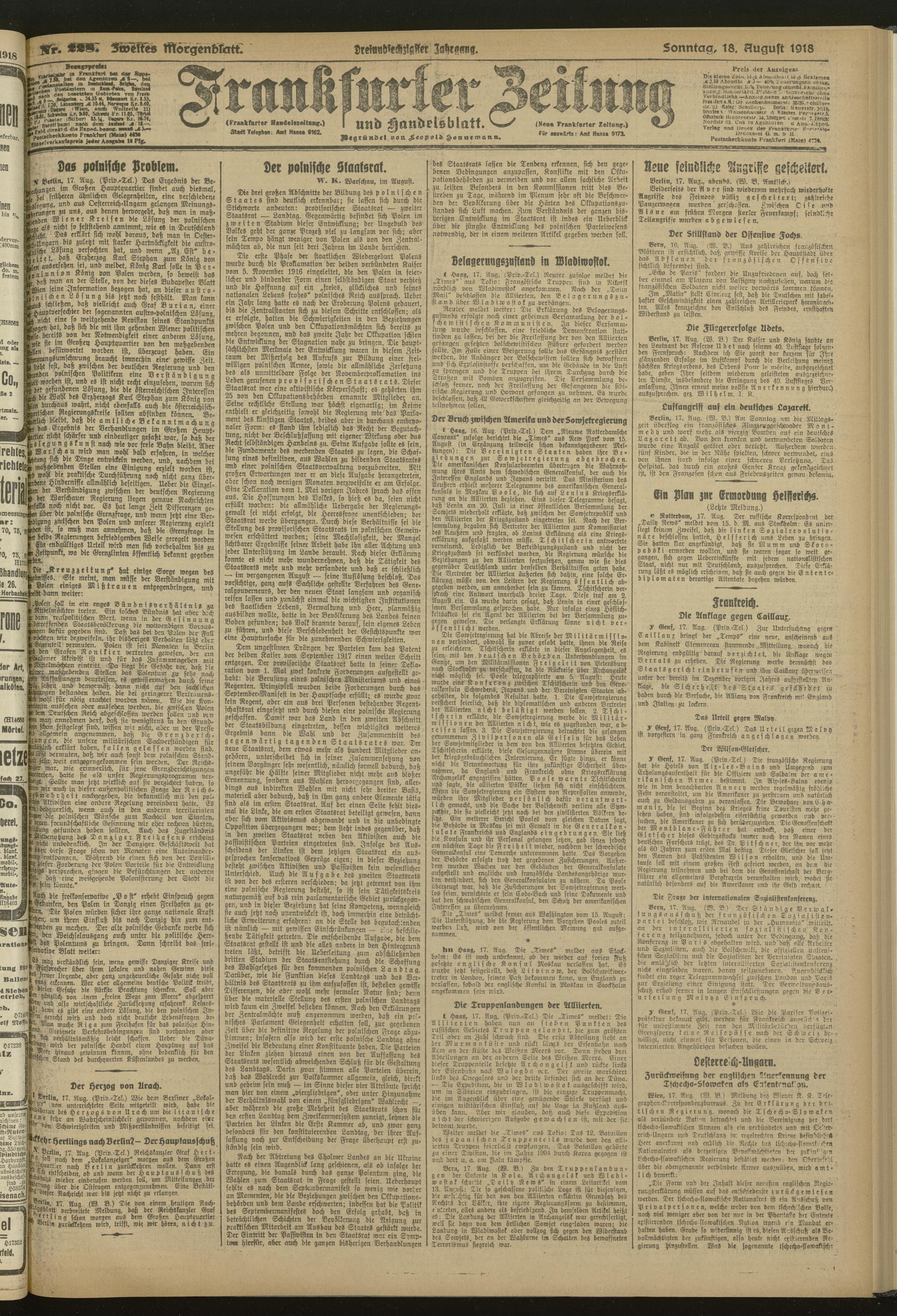 18.08.1918 = Nr. 228. Zweites Morgenblatt