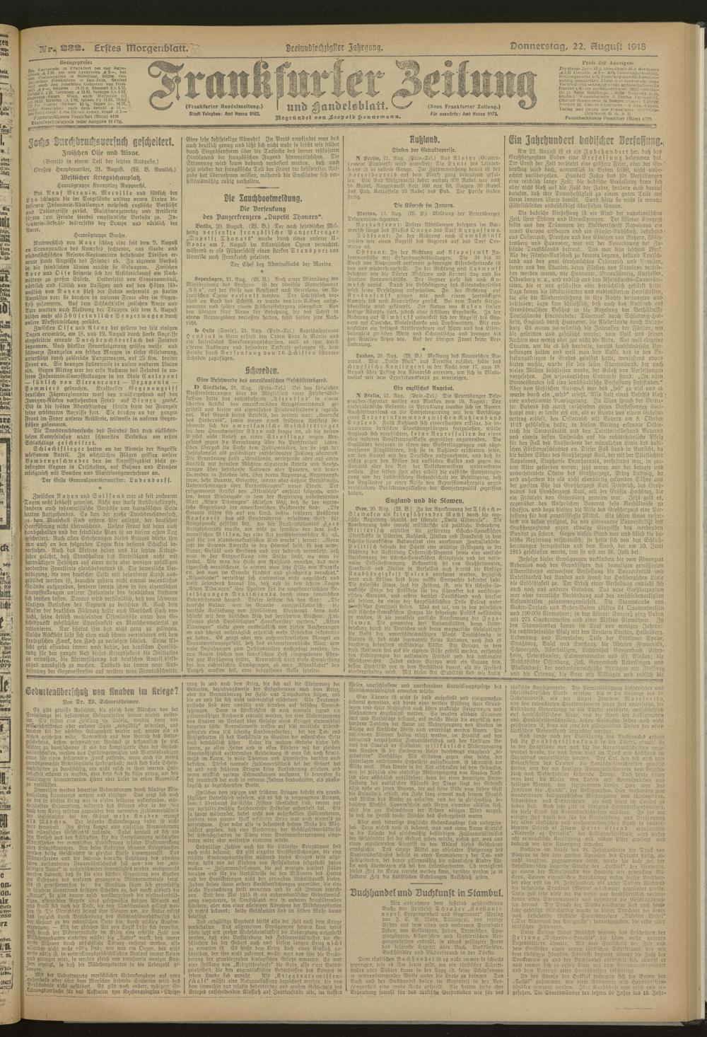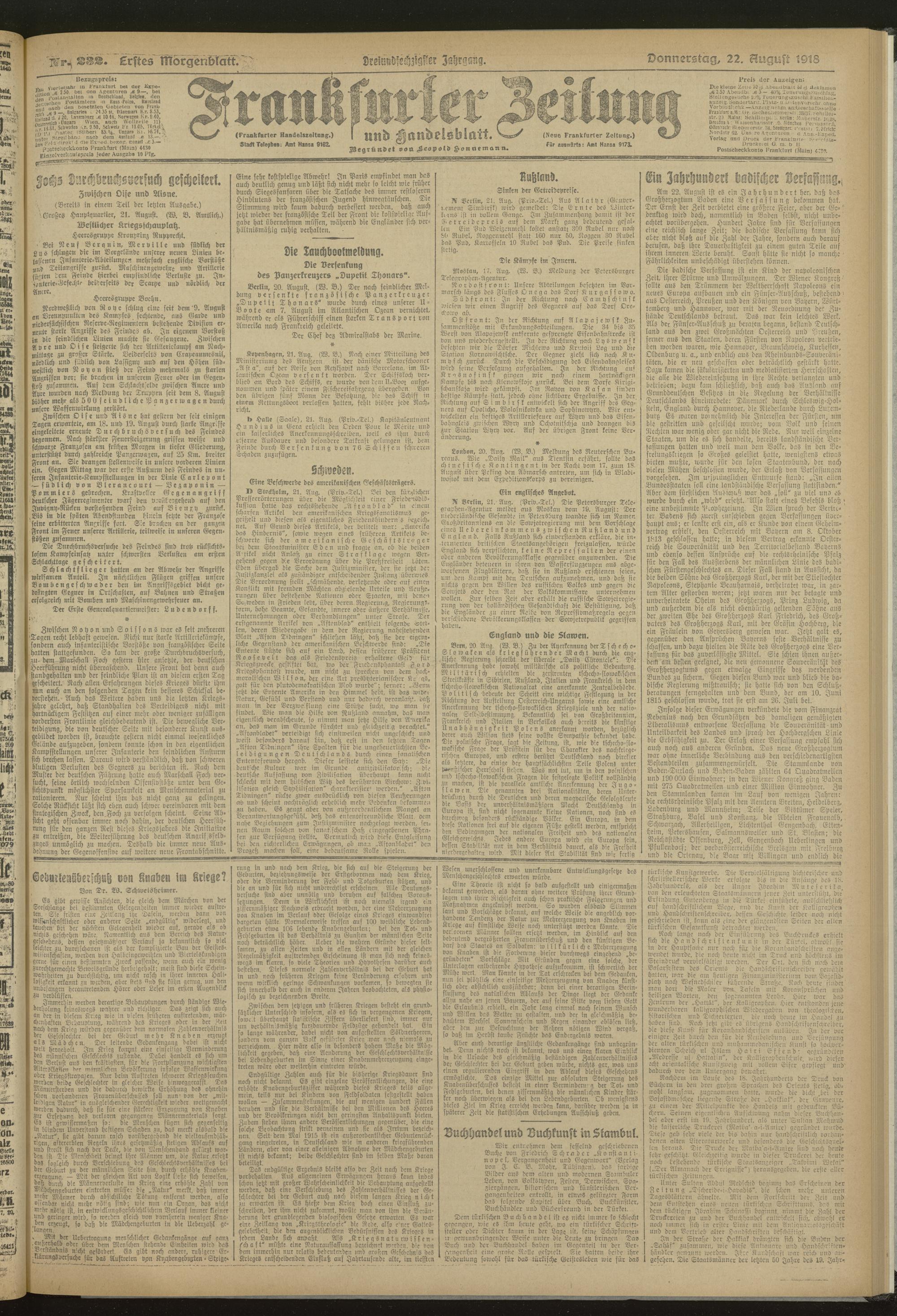 22.08.1918 = Nr. 232. Erstes Morgenblatt