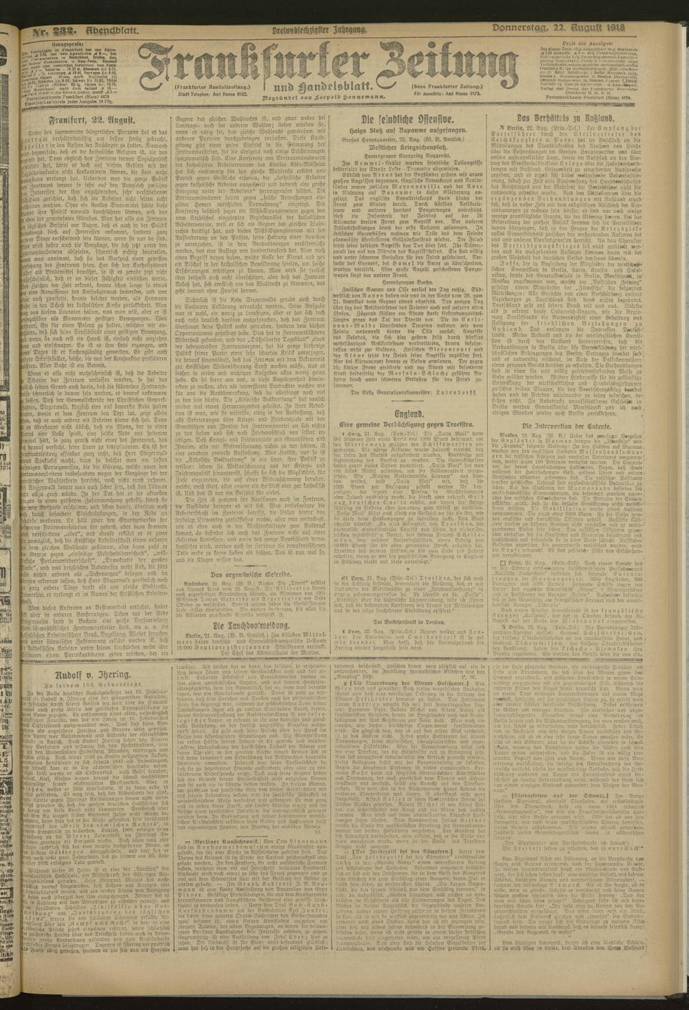 22.08.1918 = Nr. 232. Abendblatt