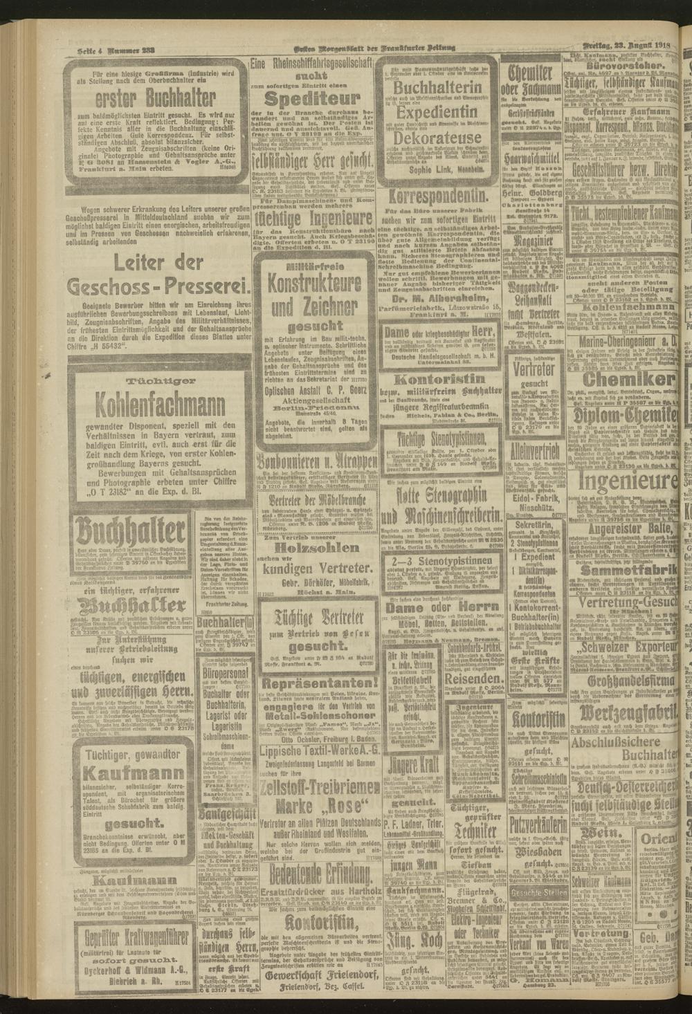 23.08.1918 = Nr. 233. Erstes Morgenblatt