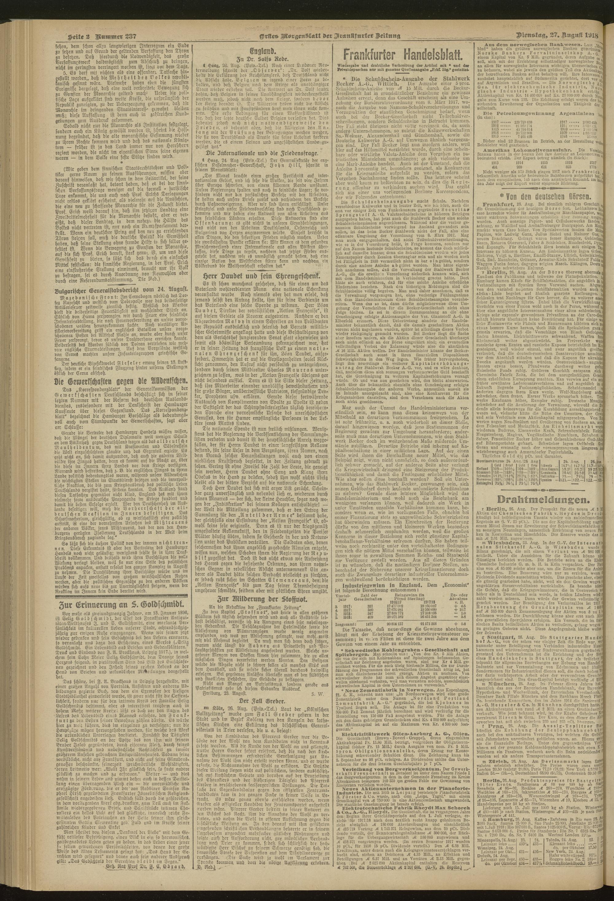 27.08.1918 = Nr. 237. Erstes Morgenblatt