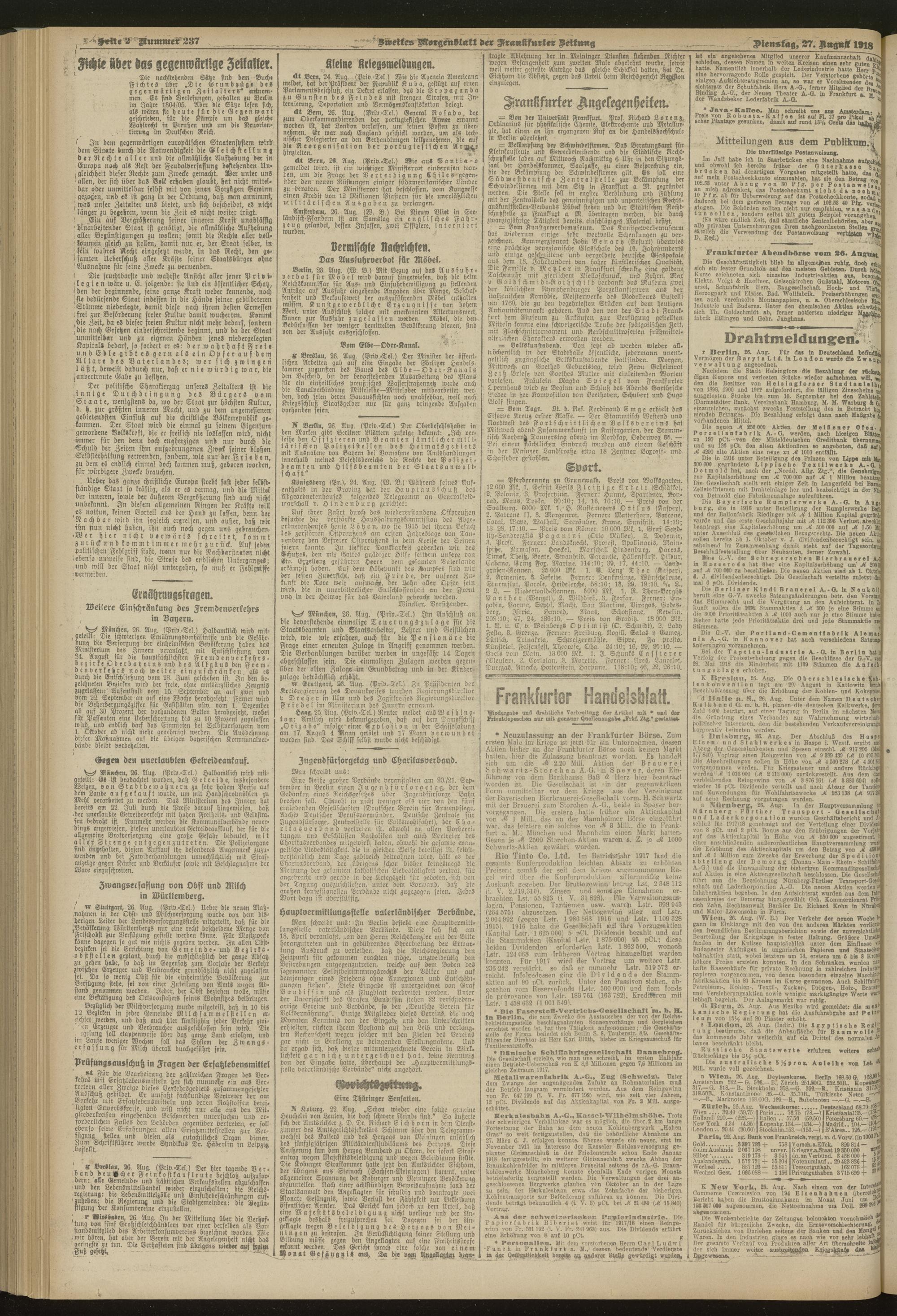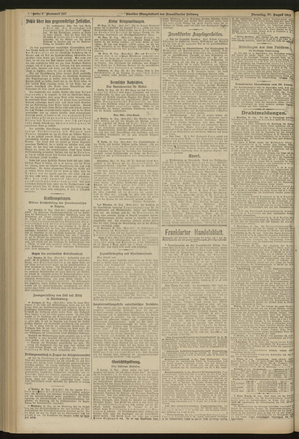 27.08.1918 = Nr. 237. Zweites Morgenblatt