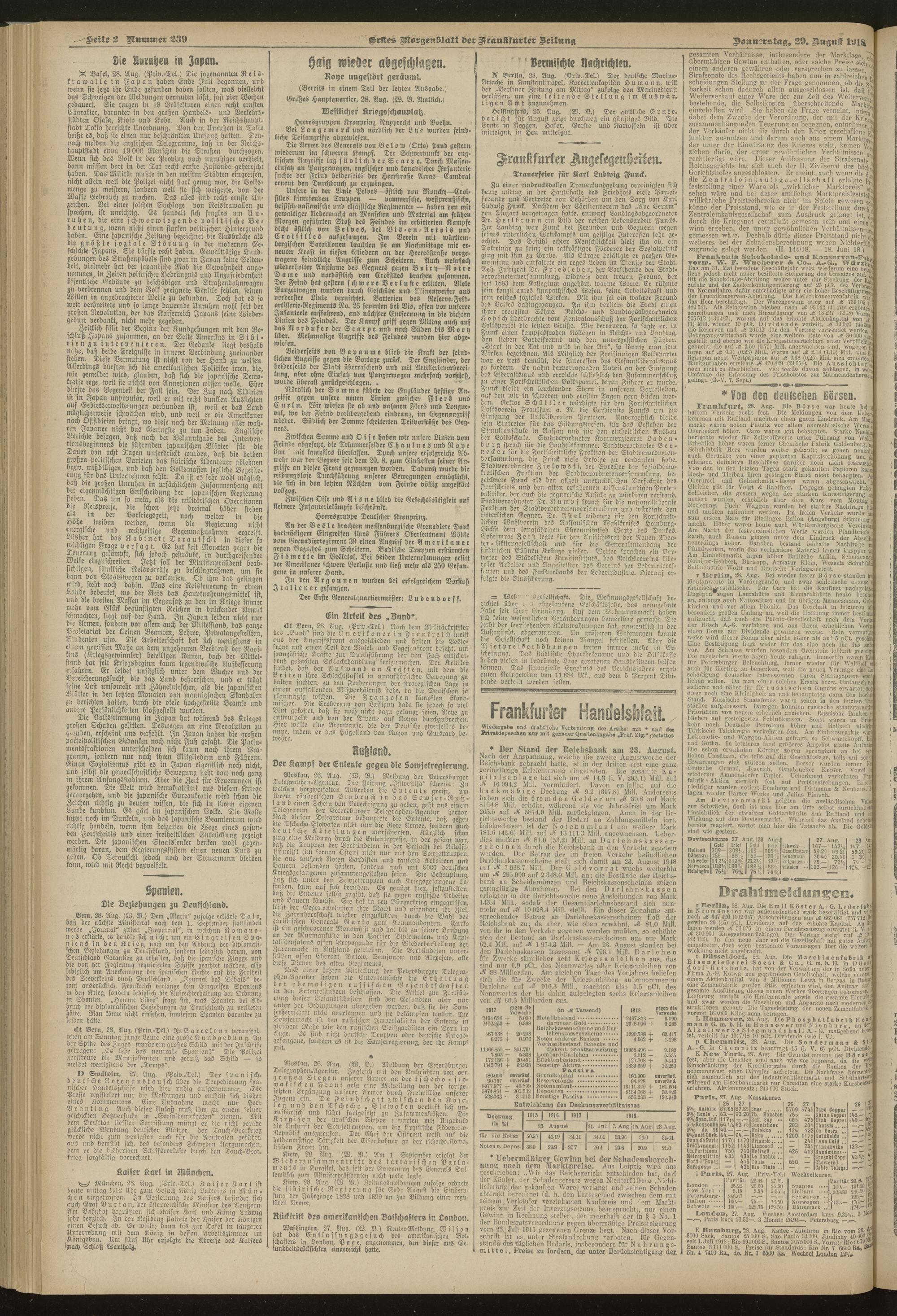 29.08.1918 = Nr. 239. Erstes Morgenblatt