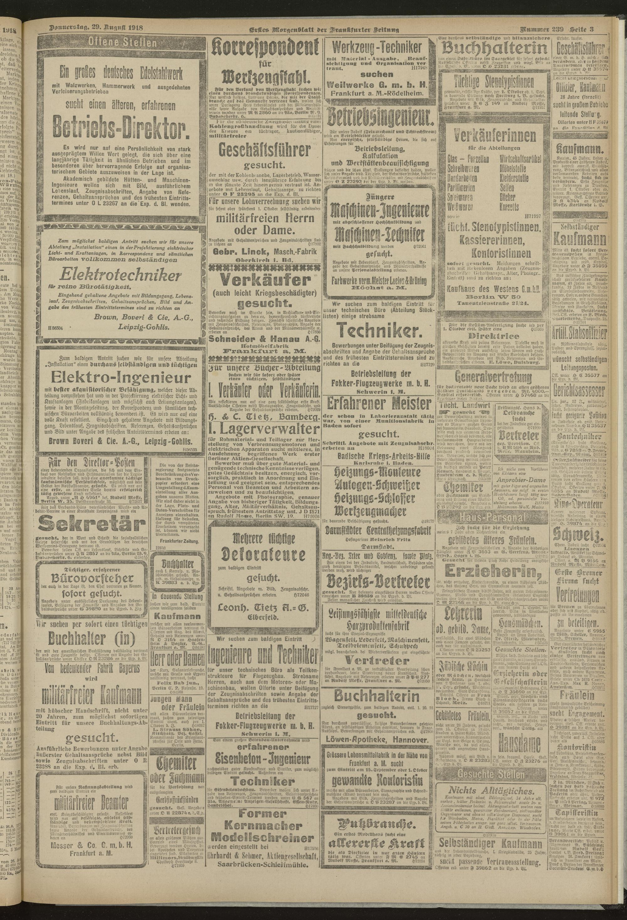 29.08.1918 = Nr. 239. Erstes Morgenblatt