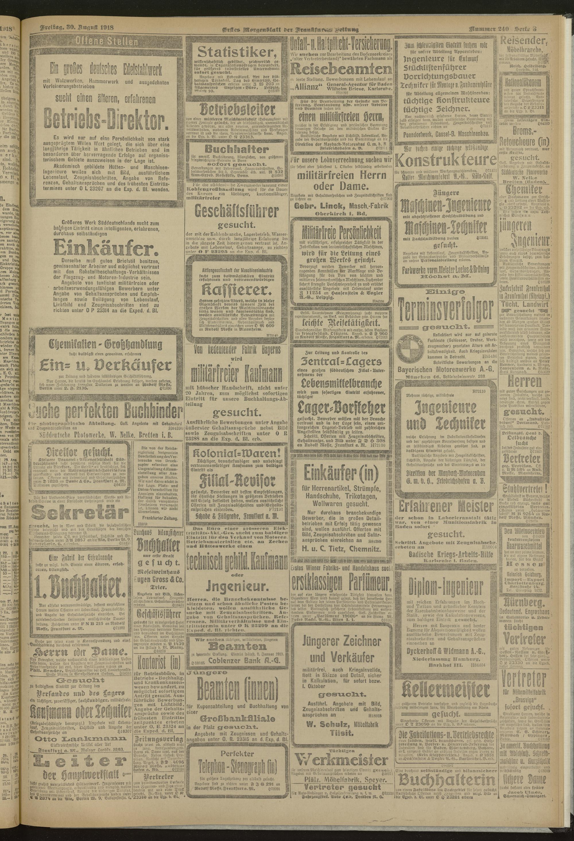 30.08.1918 = Nr. 240. Erstes Morgenblatt