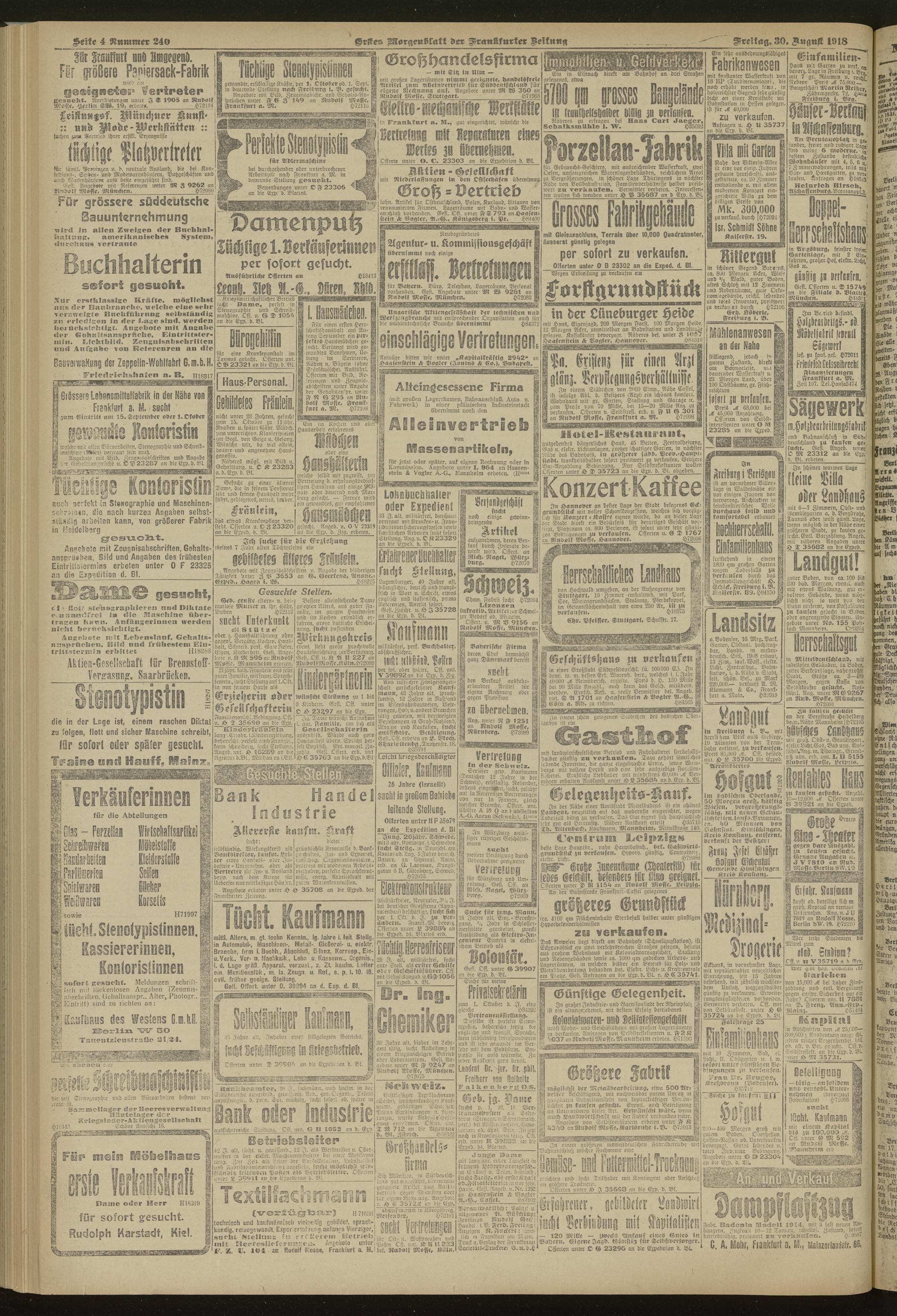 30.08.1918 = Nr. 240. Erstes Morgenblatt