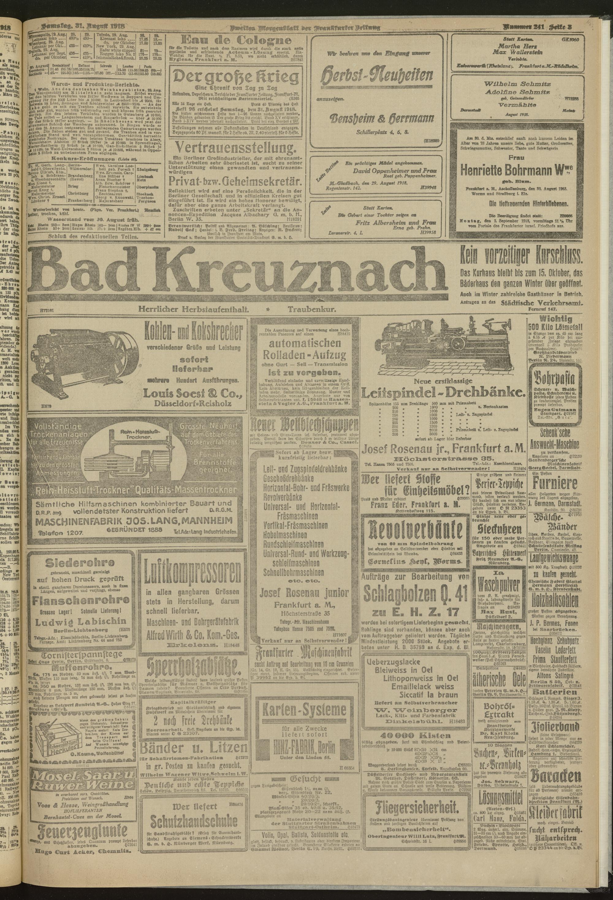 31.08.1918 = Nr. 241. Zweites Morgenblatt