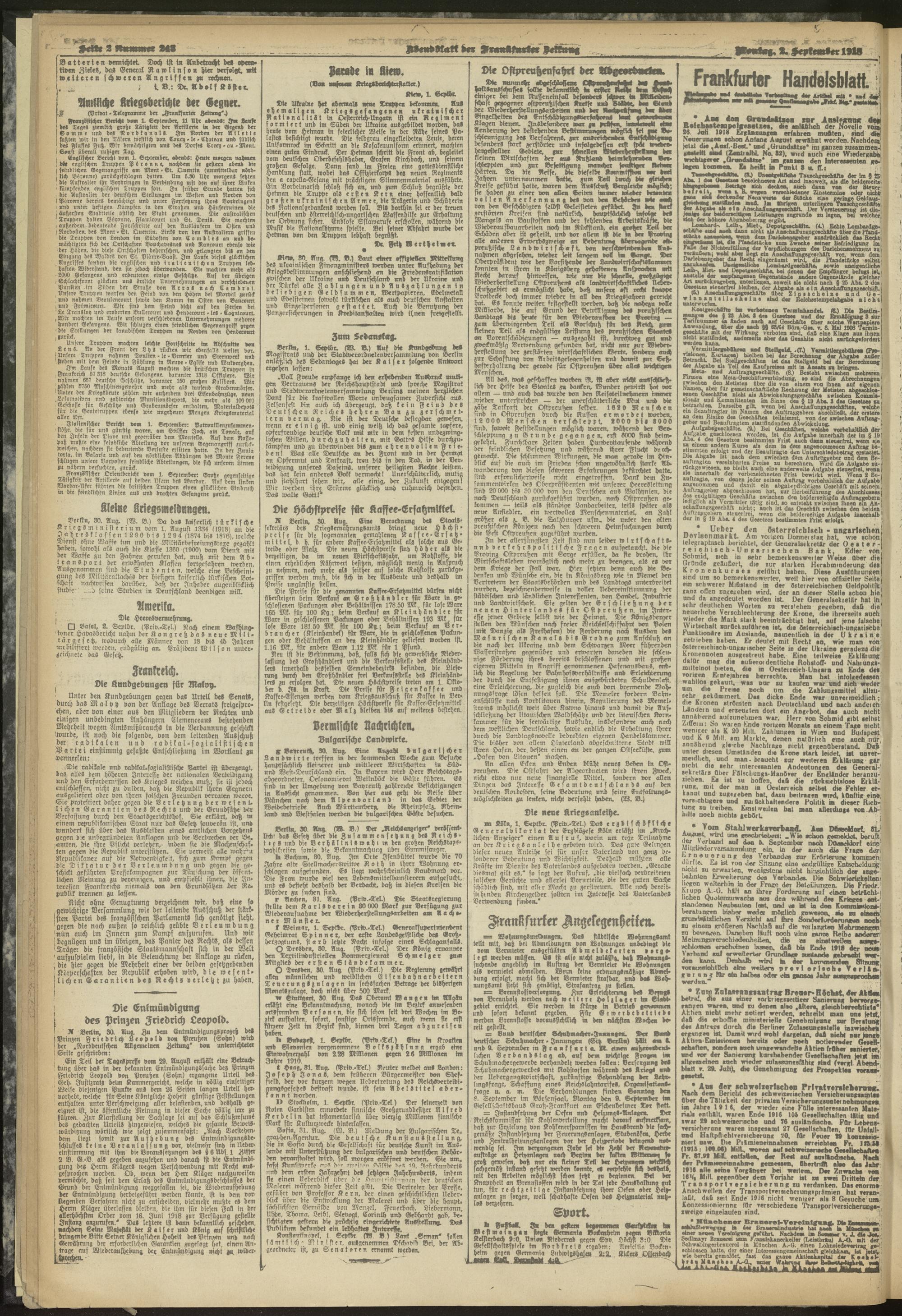 02.09.1918 = Nr. 243. Abendblatt