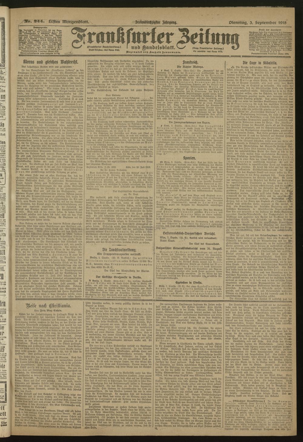 03.09.1918 = Nr. 244. Erstes Morgenblatt