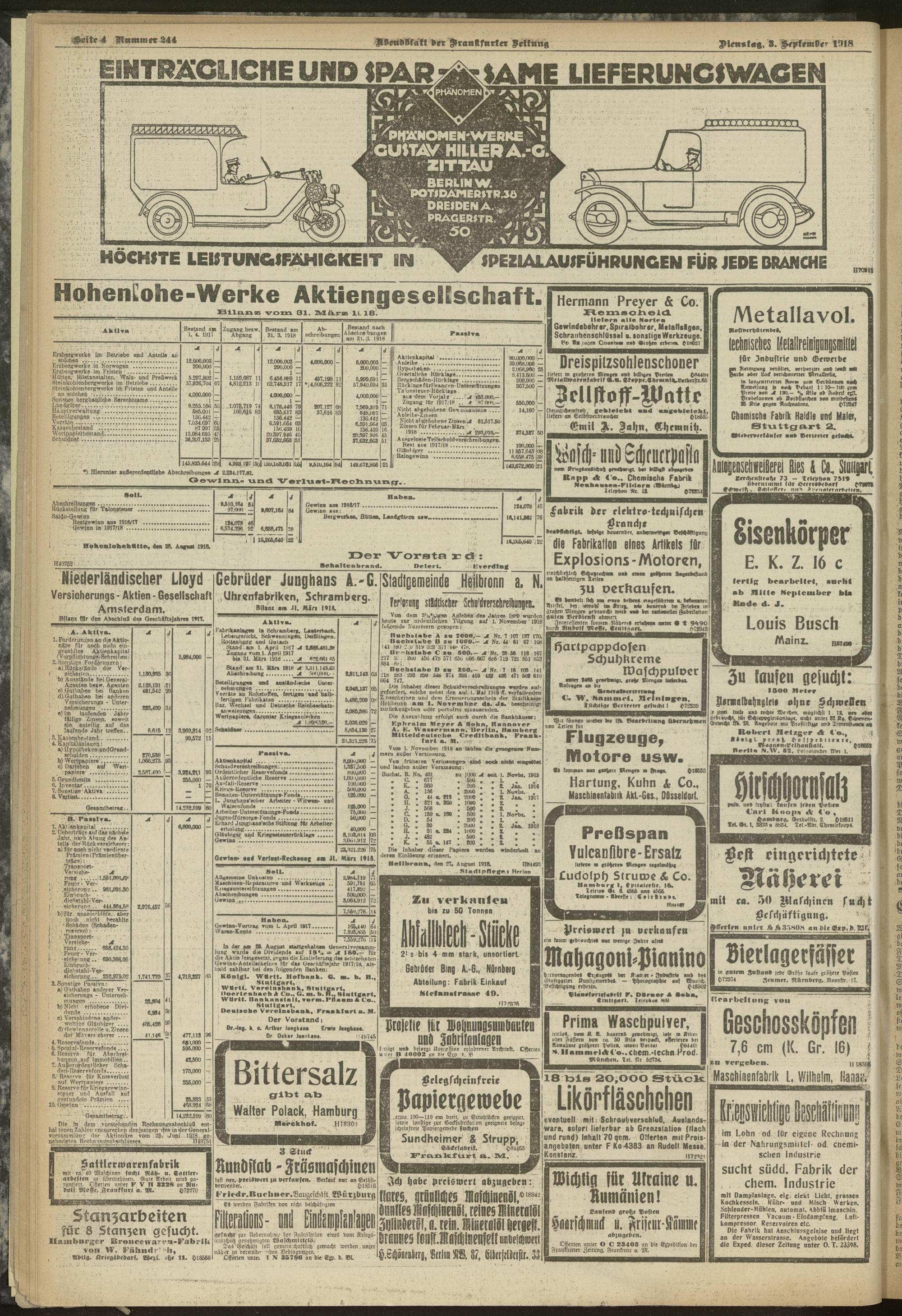 03.09.1918 = Nr. 244. Abendblatt