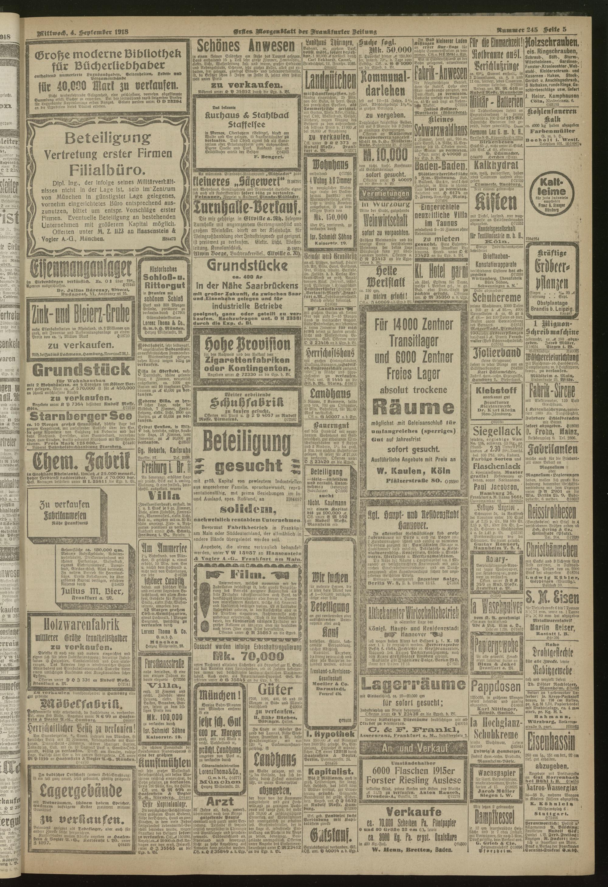 04.09.1918 = Nr. 245. Erstes Morgenblatt
