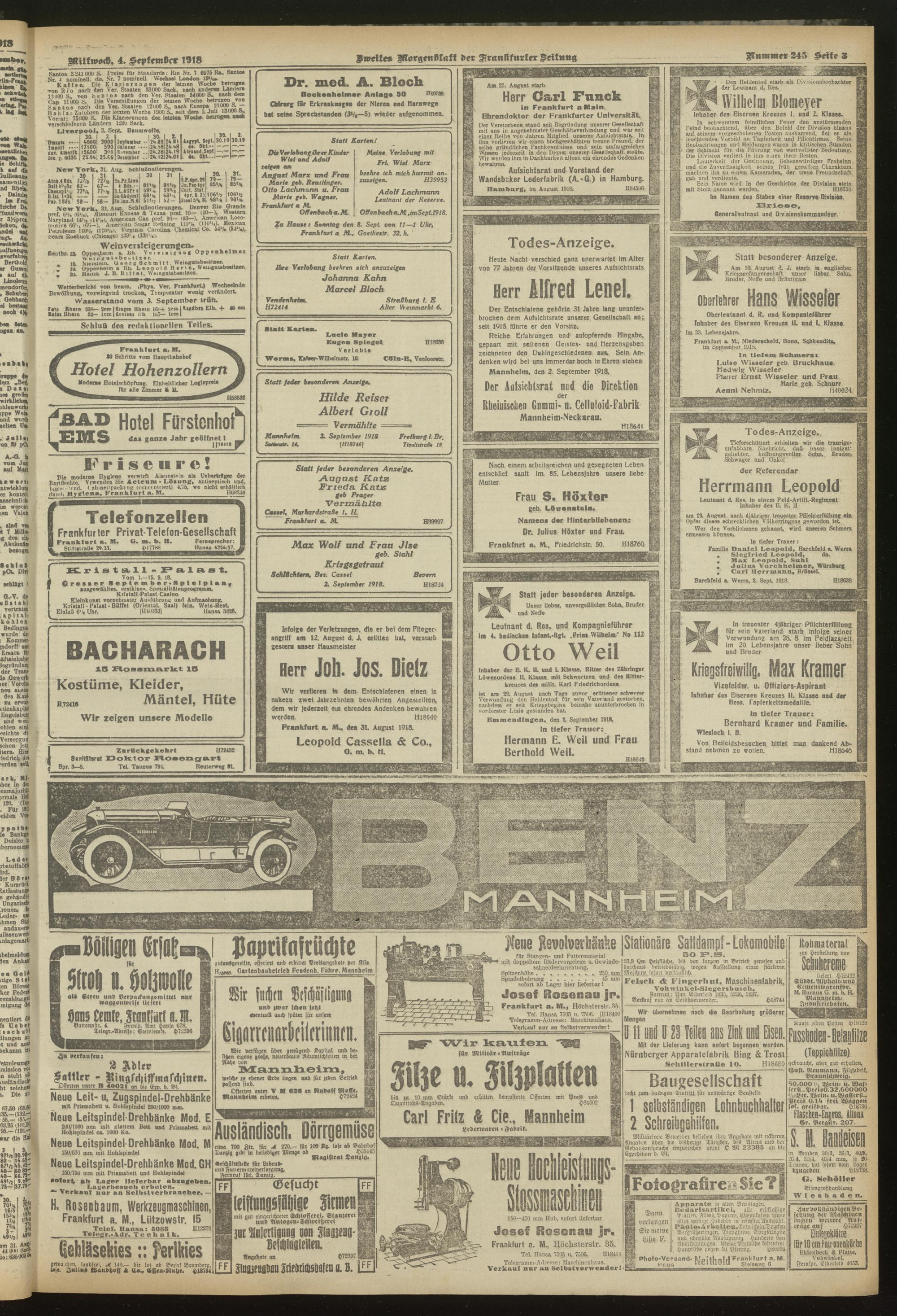 04.09.1918 = Nr. 245. Zweites Morgenblatt