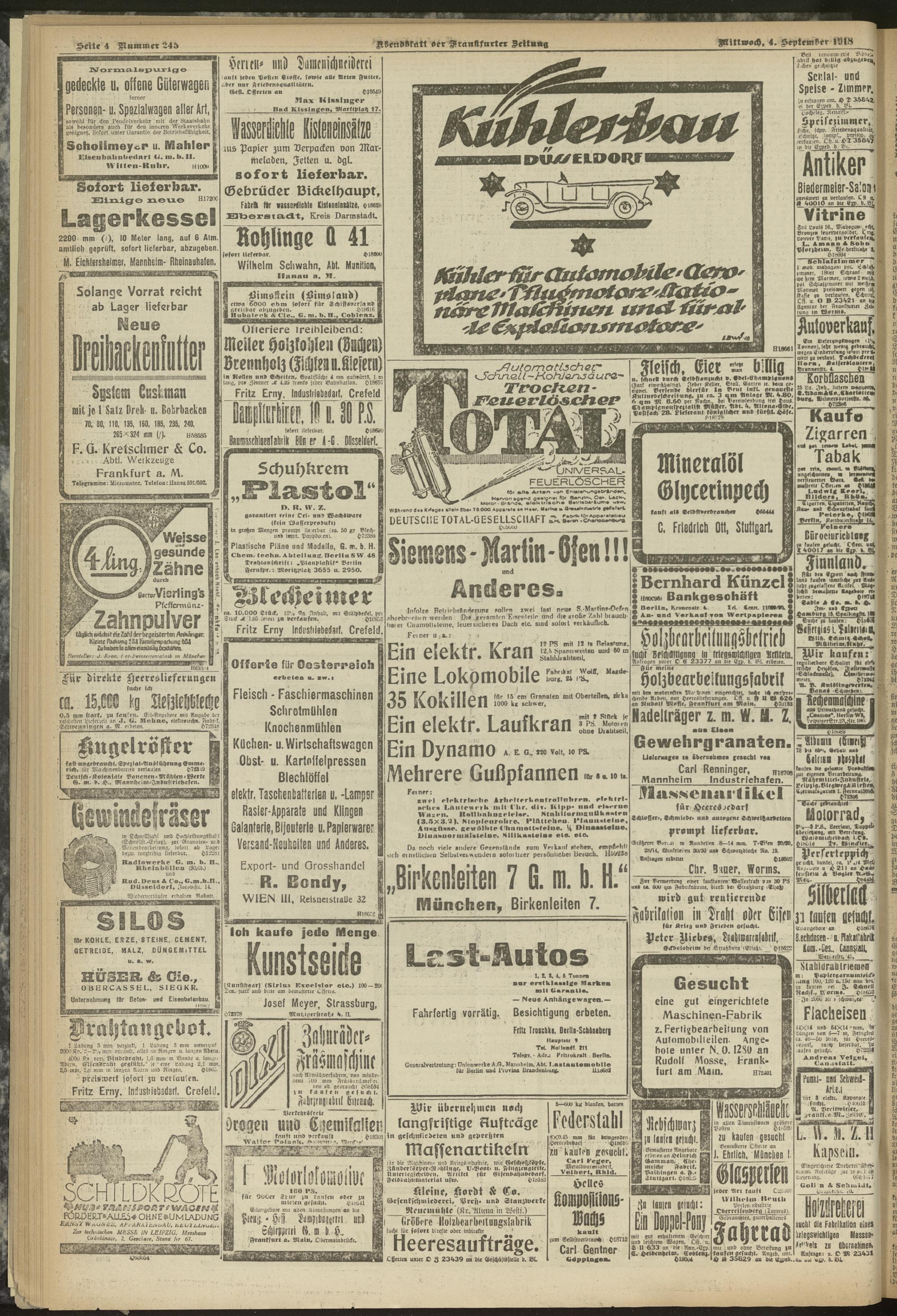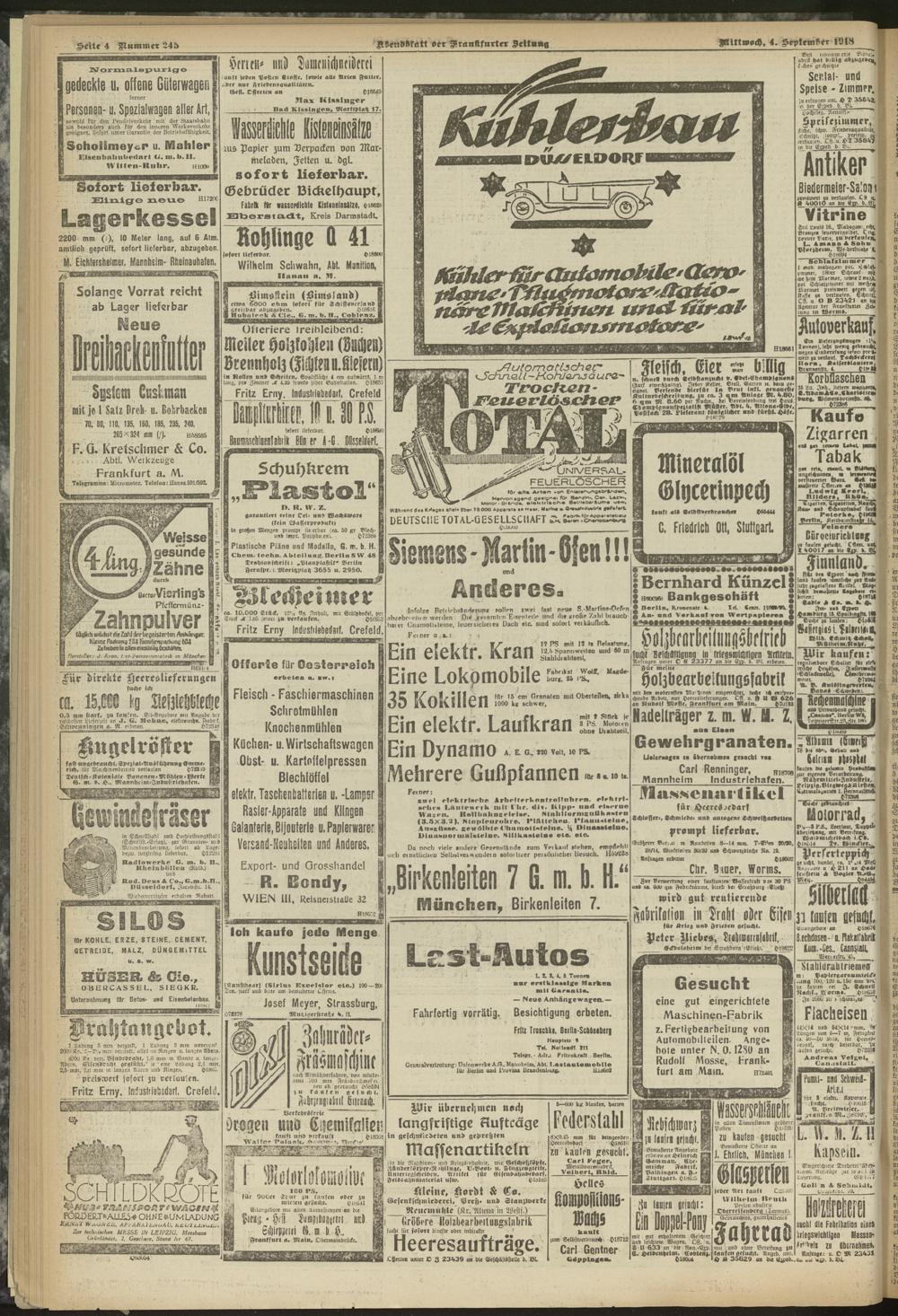 04.09.1918 = Nr. 245. Abendblatt
