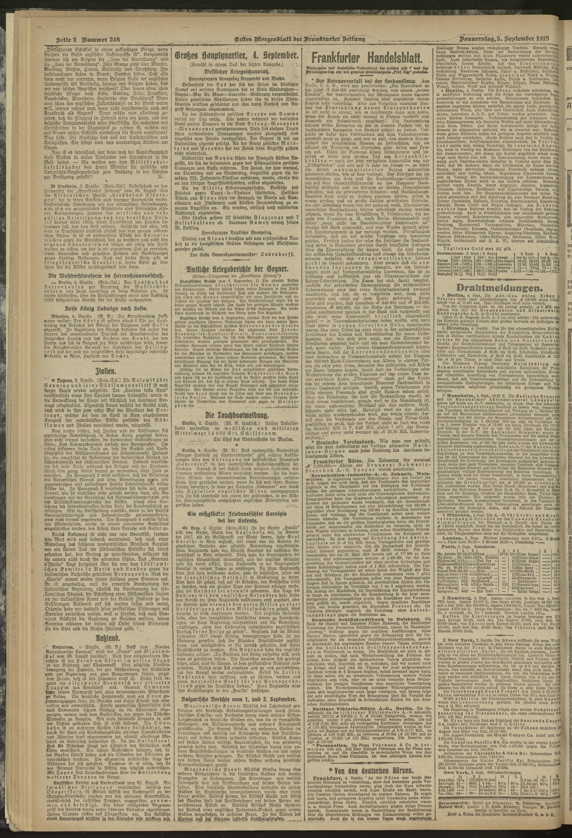 05.09.1918 = Nr. 246 Erstes Morgenblatt