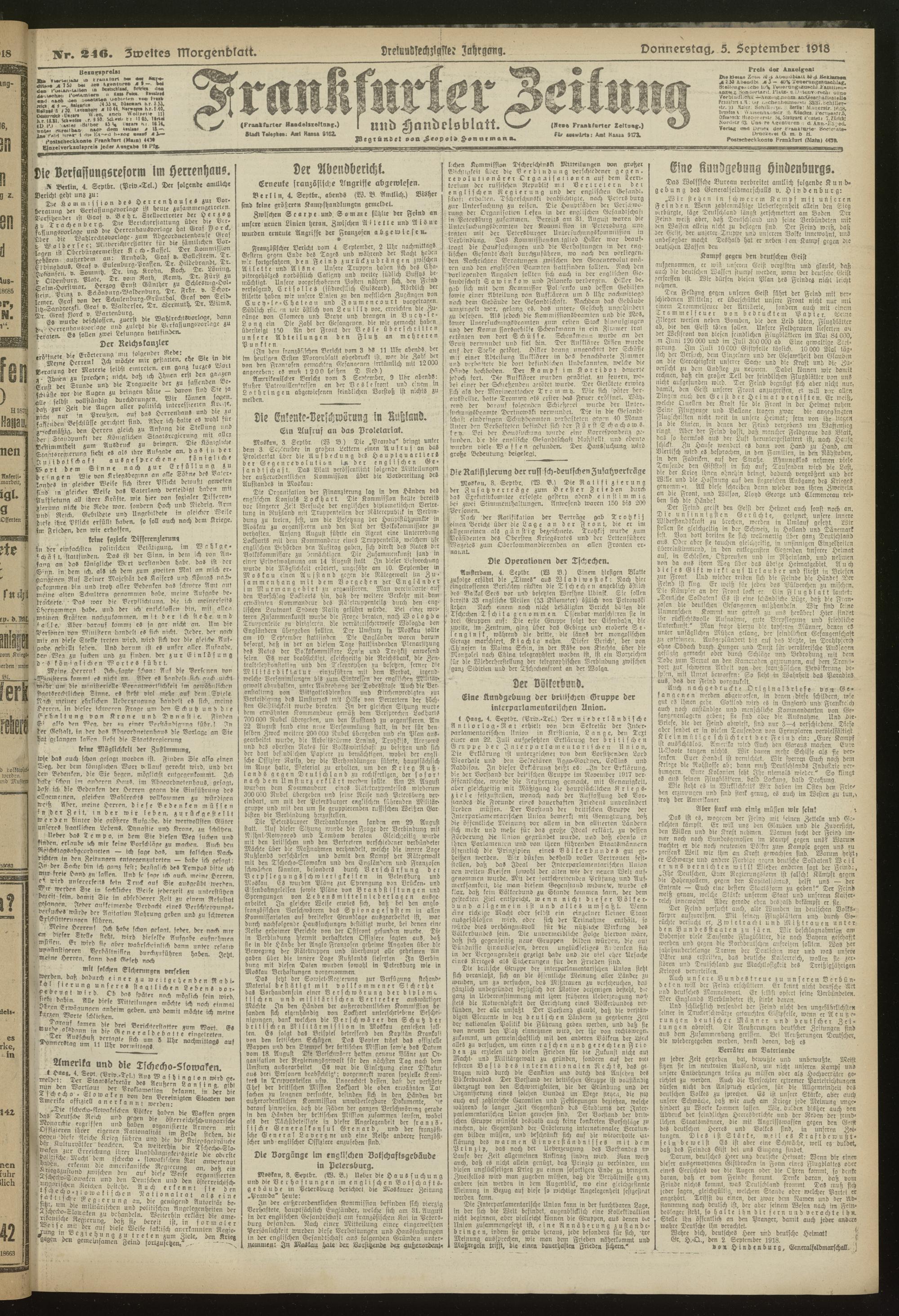 05.09.1918 = Nr. 246. Zweites Morgenblatt