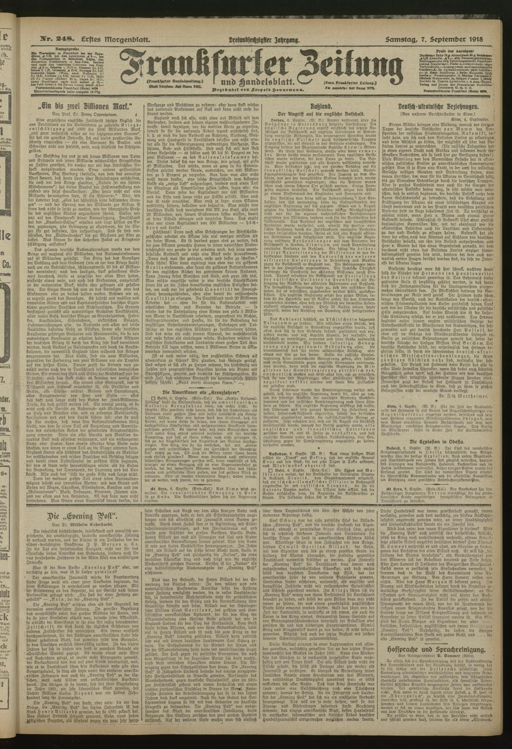 07.09.1918 = Nr. 248. Erstes Morgenblatt
