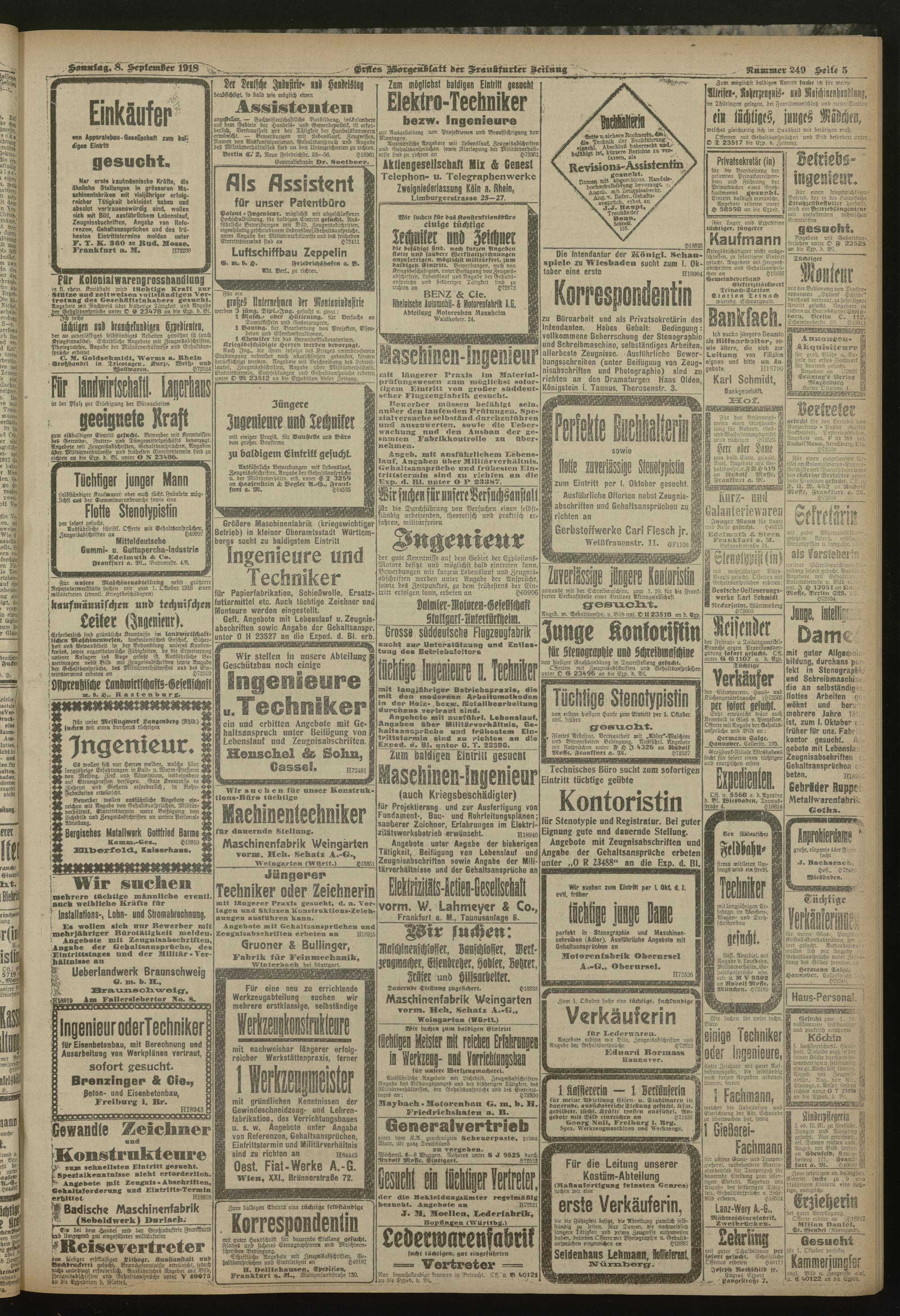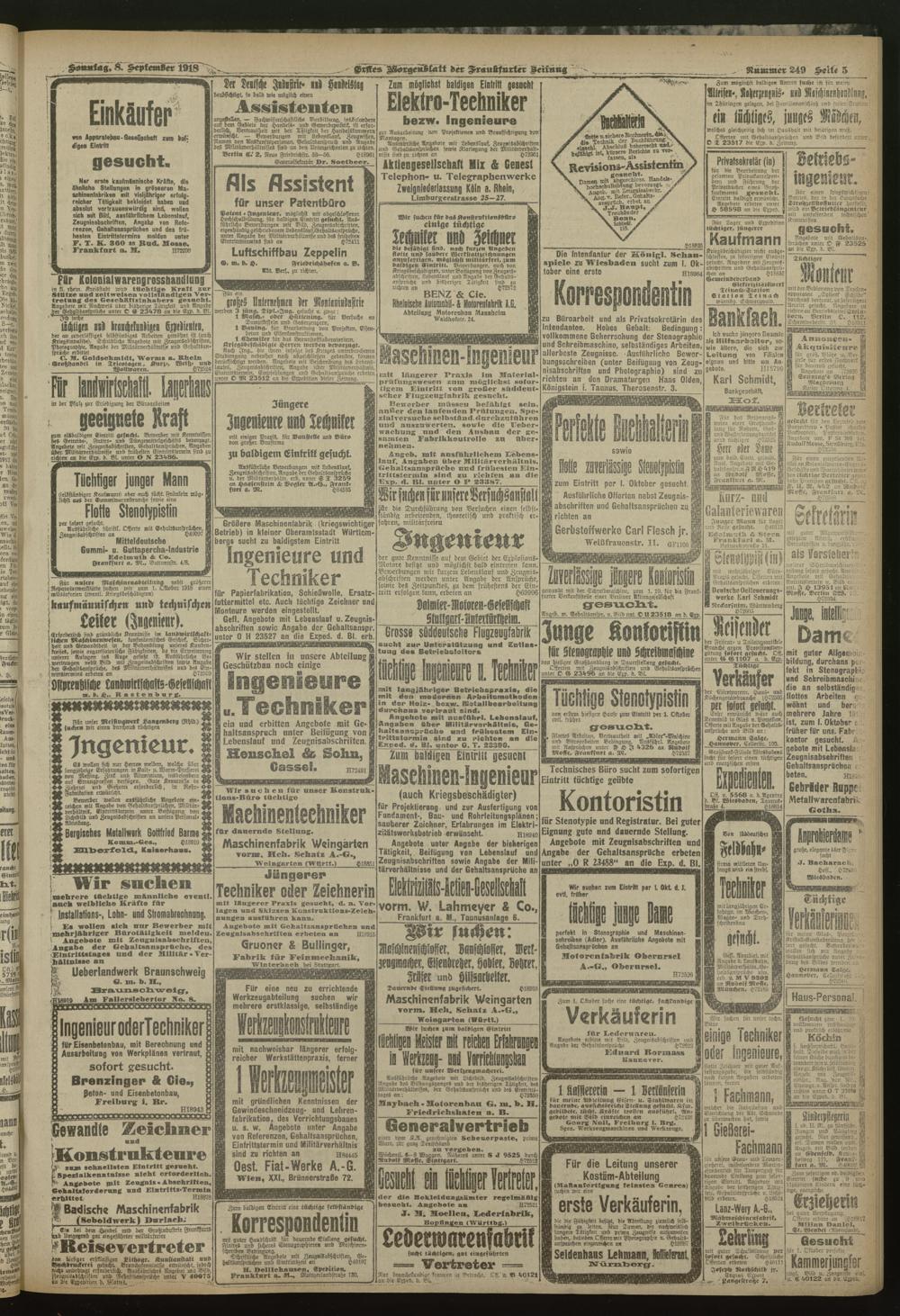 08.09.1918 = Nr. 249. Erstes Morgenblatt