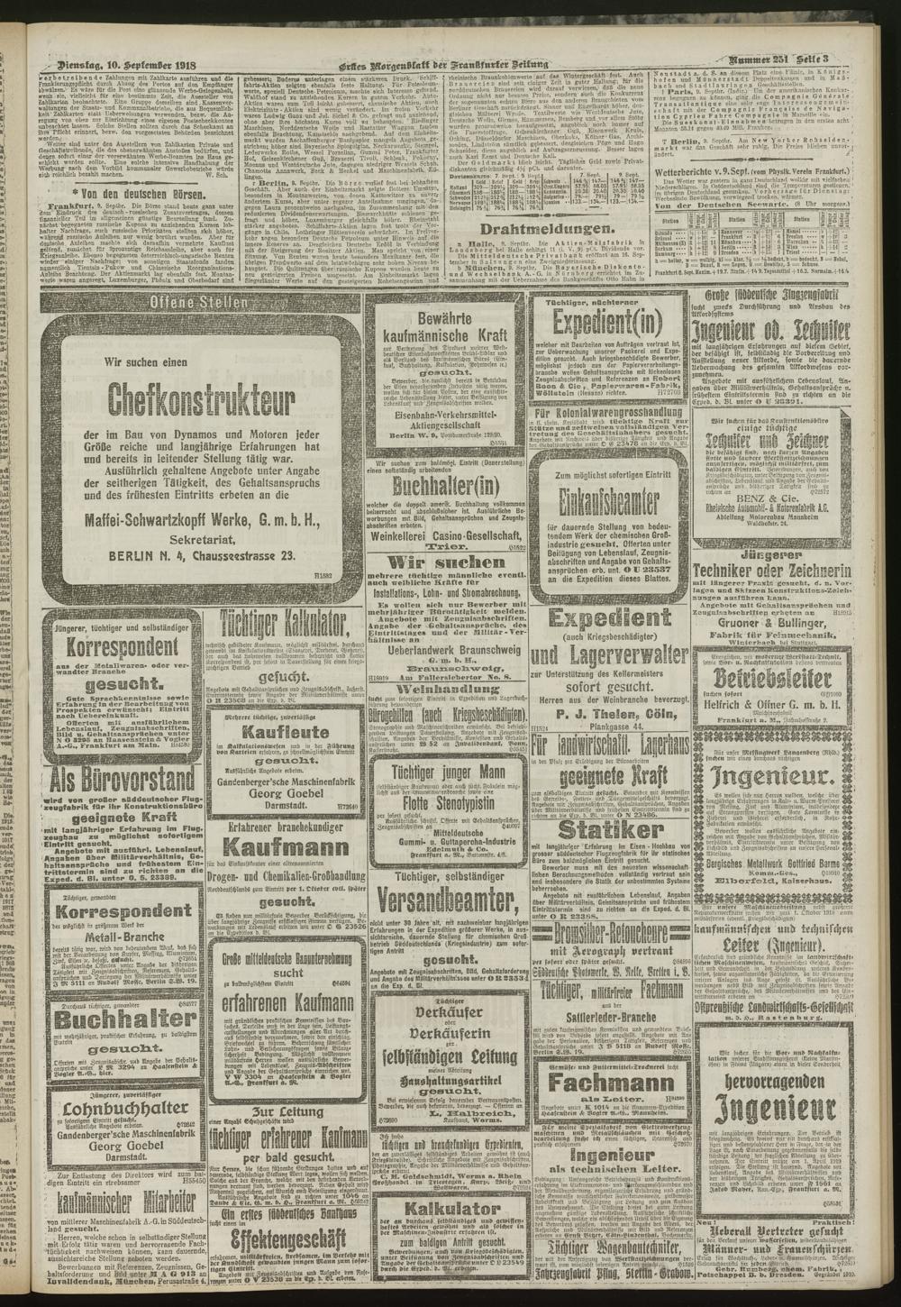 10.09.1918 = Nr. 251. Erstes Morgenblatt