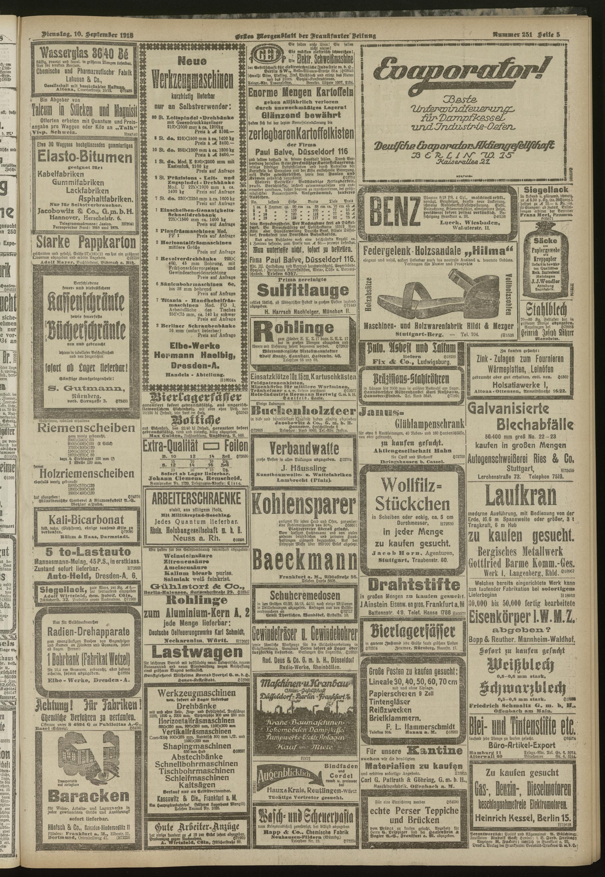 10.09.1918 = Nr. 251. Erstes Morgenblatt