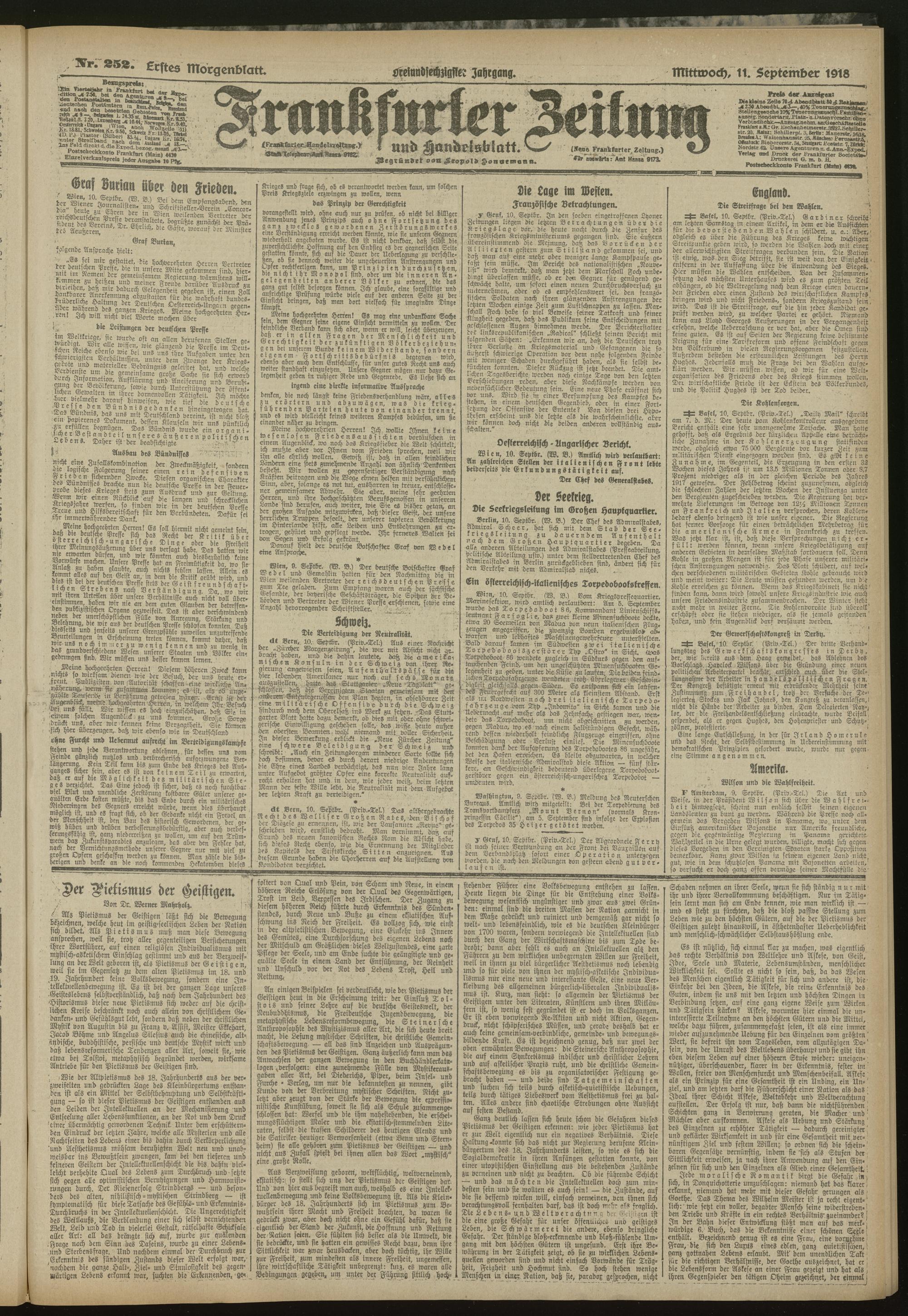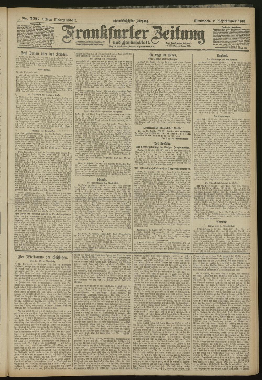 11.09.1918 = Nr. 252. Erstes Morgenblatt