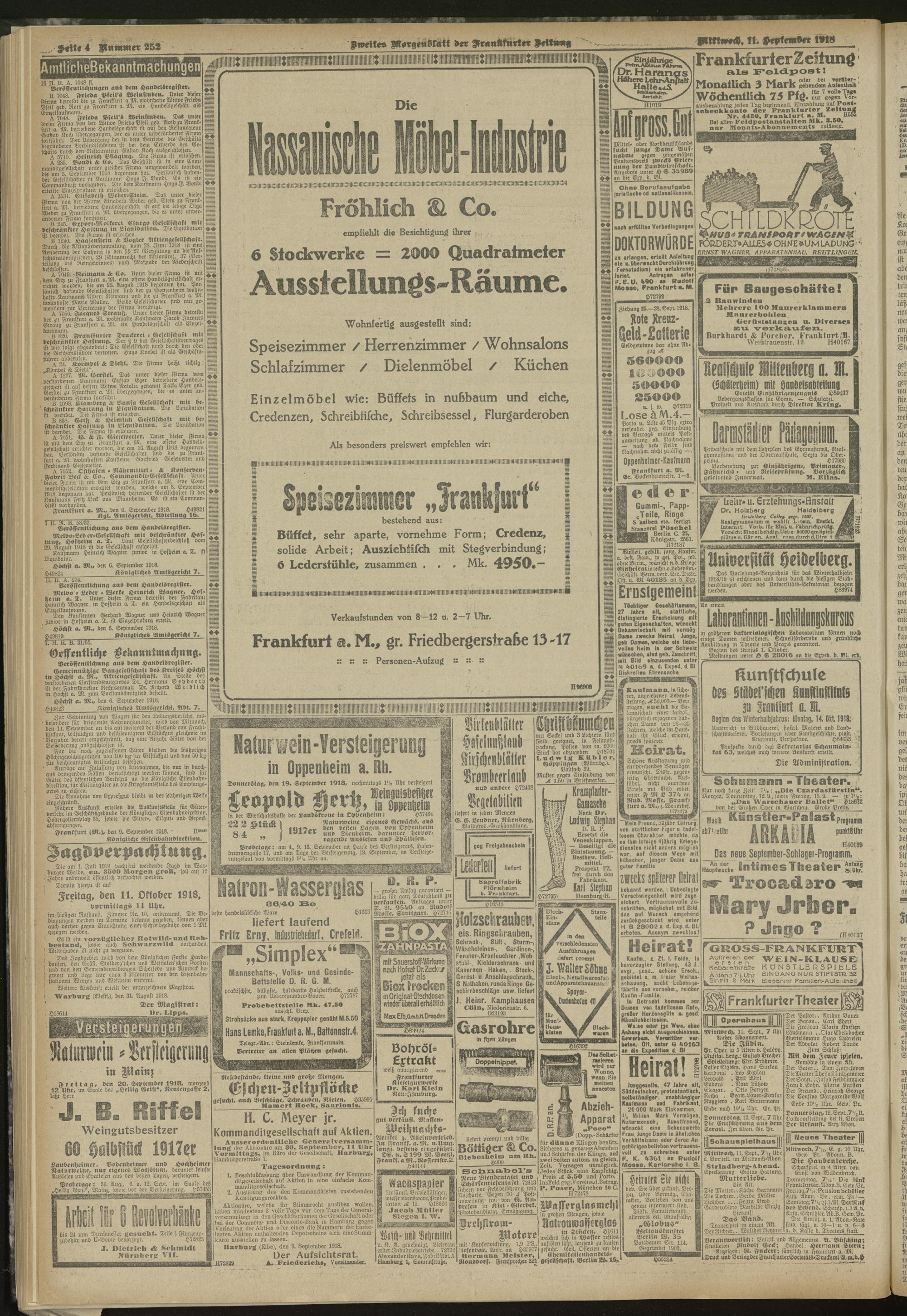 11.09.1918 = Nr. 252. Zweites Morgenblatt