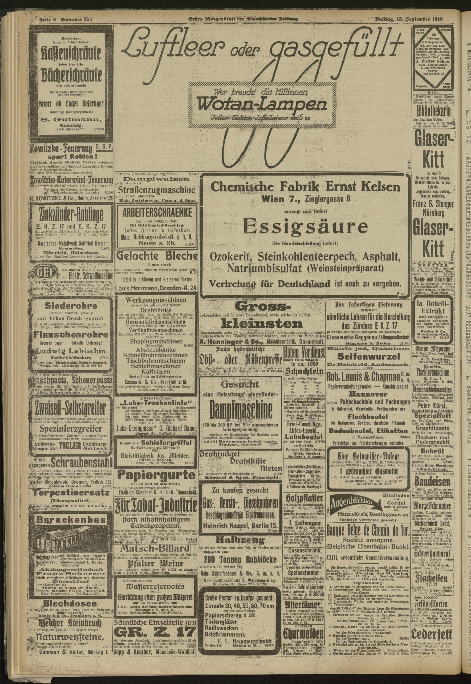 13.09.1918 = Nr. 254. Erstes Morgenblatt