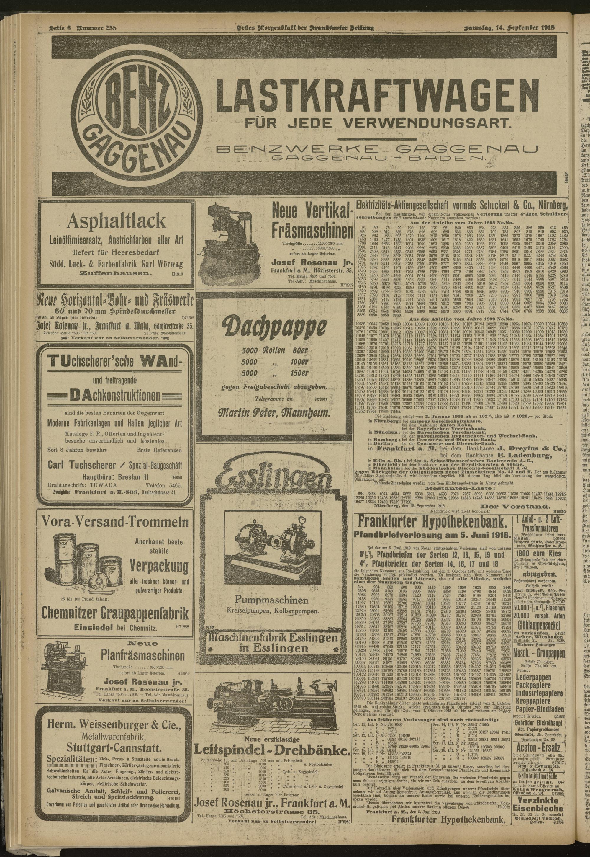 14.09.1918 = Nr. 255. Erstes Morgenblatt