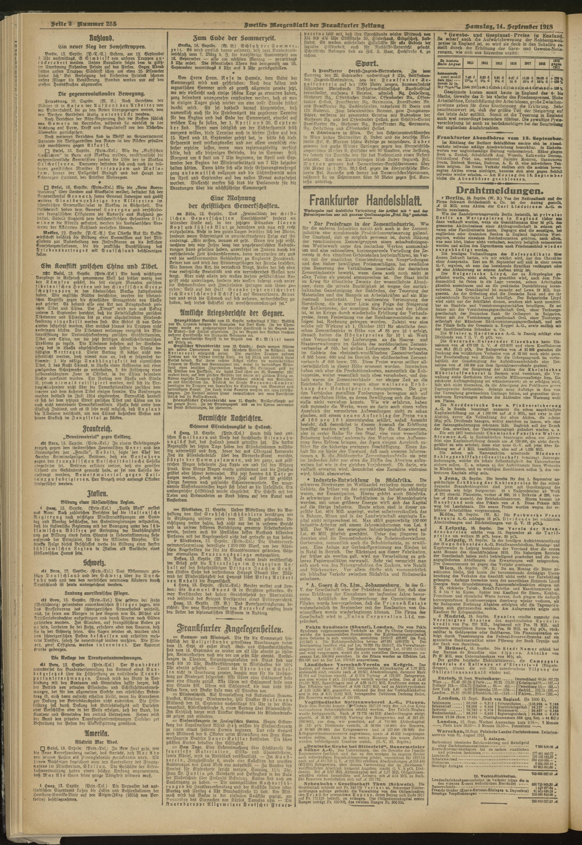 14.09.1918 = Nr. 255. Zweites Morgenblatt