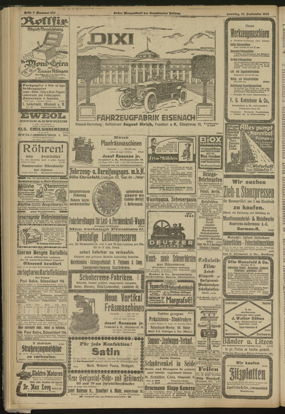 15.09.1918 = Nr. 256. Erstes Morgenblatt