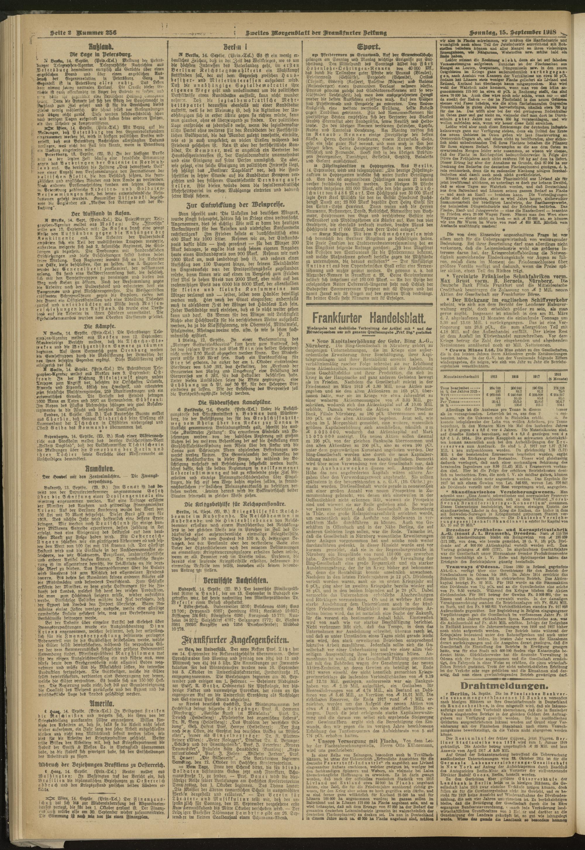 15.09.1918 = Nr. 256. Zweites Morgenblatt
