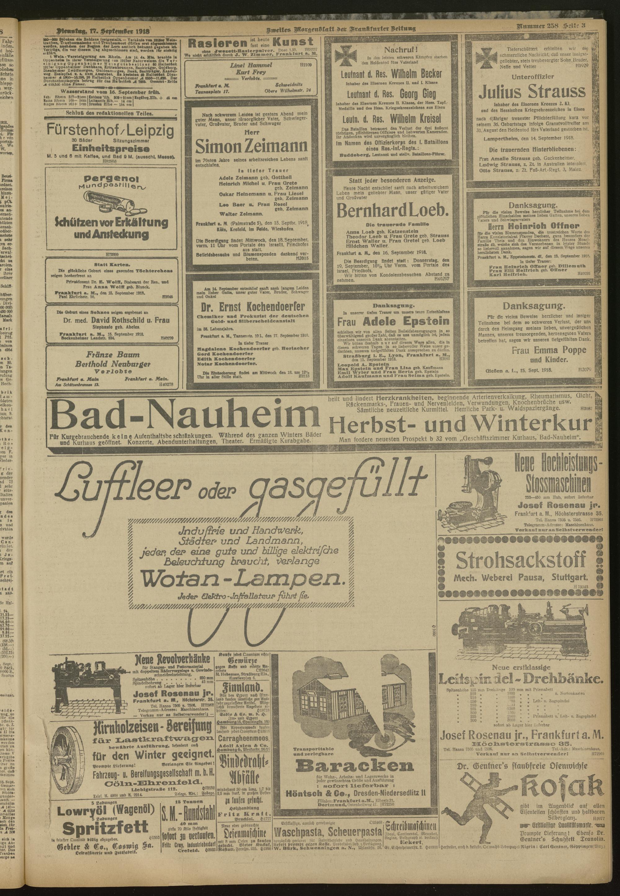 17.09.1918 = Nr. 258. Zweites Morgenblatt