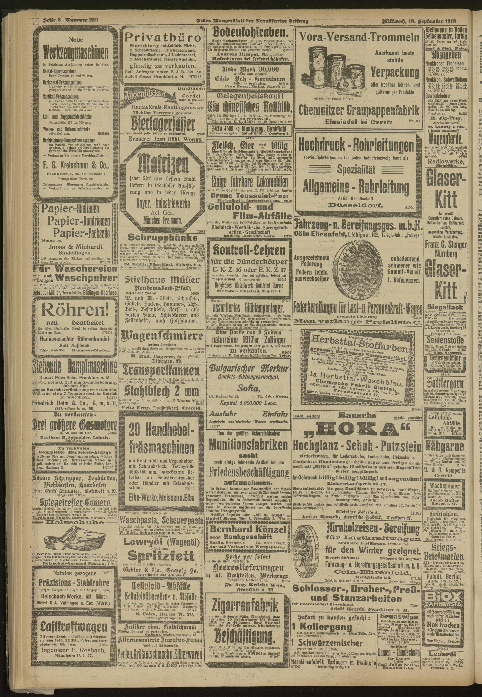 18.09.1918 = Nr. 259. Erstes Morgenblatt