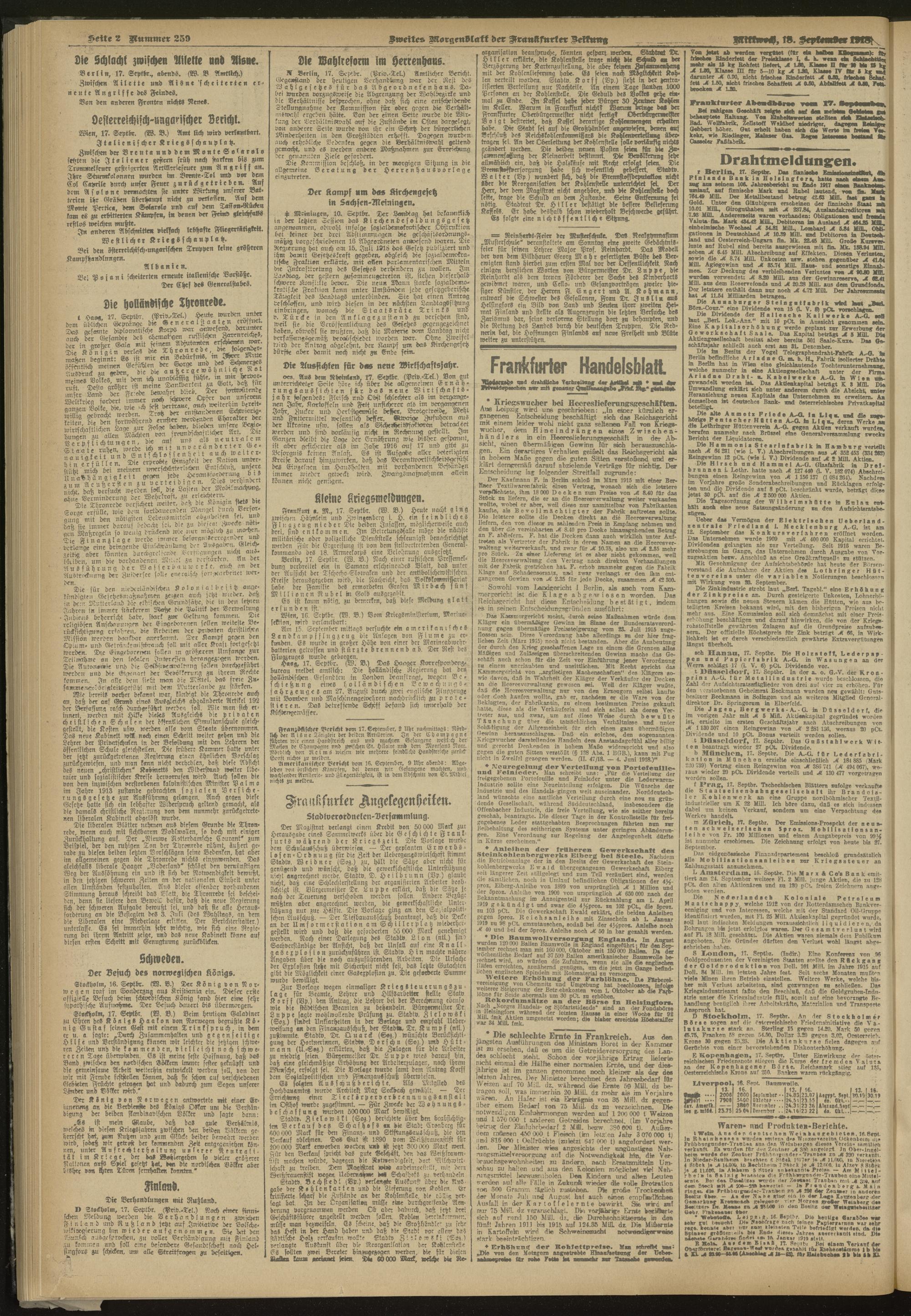 18.09.1918 = Nr. 259. Zweites Morgenblatt