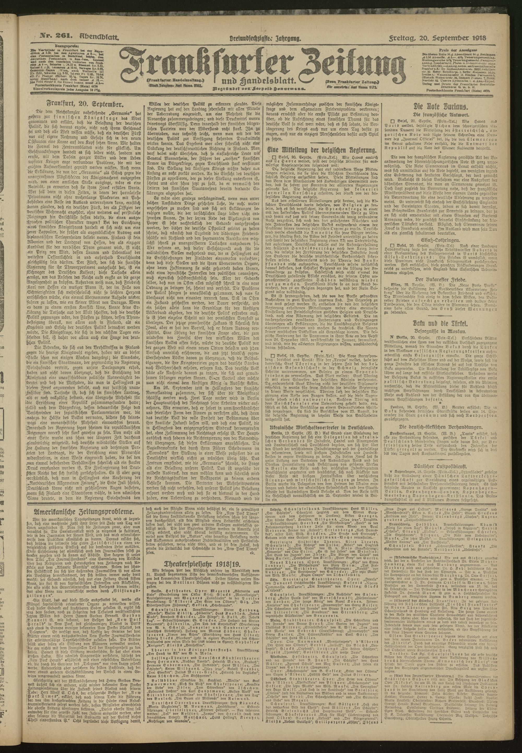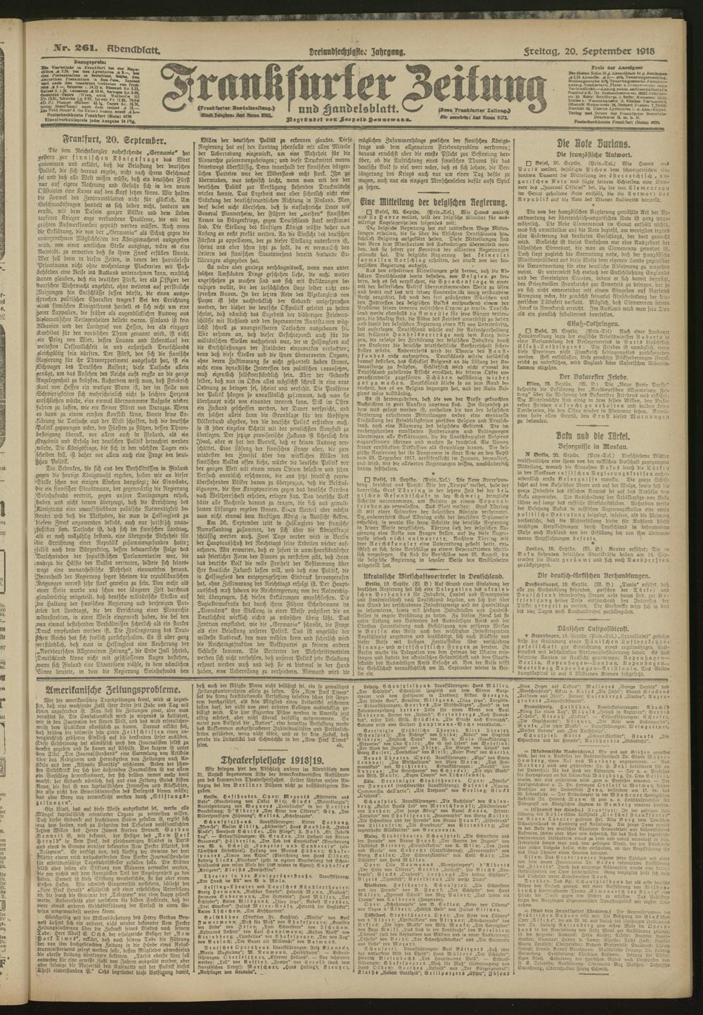 20.09.1918 = Nr. 261. Abendblatt