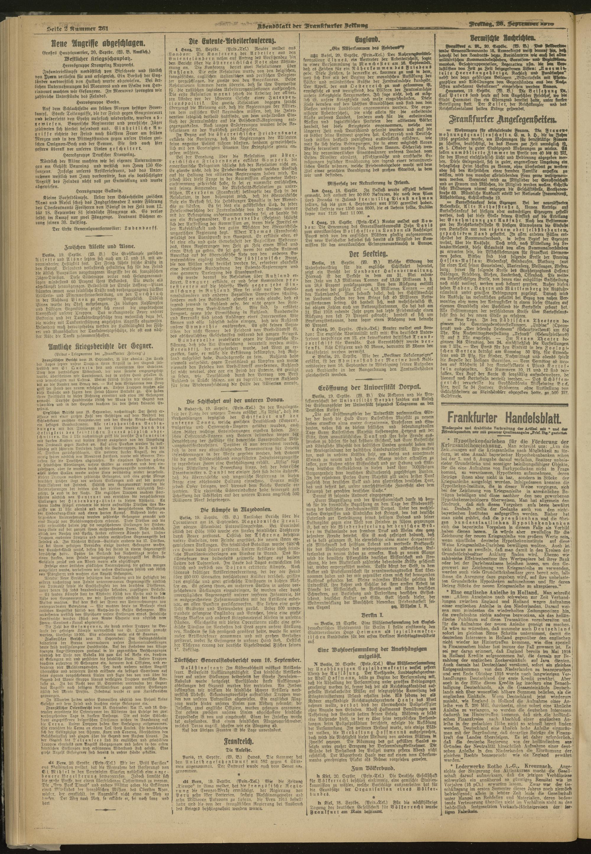 20.09.1918 = Nr. 261. Abendblatt