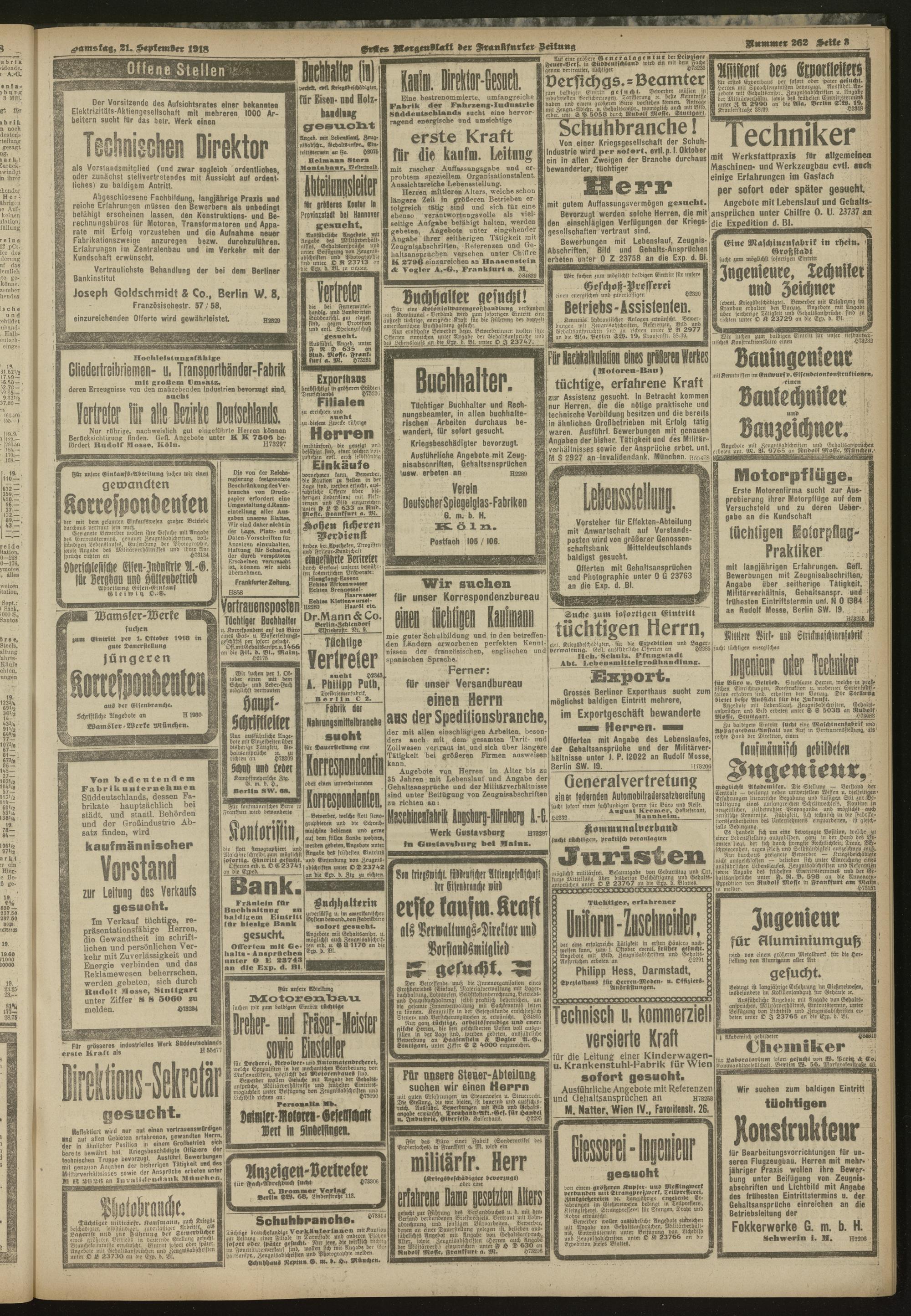 21.09.1918 = Nr. 262. Erstes Morgenblatt