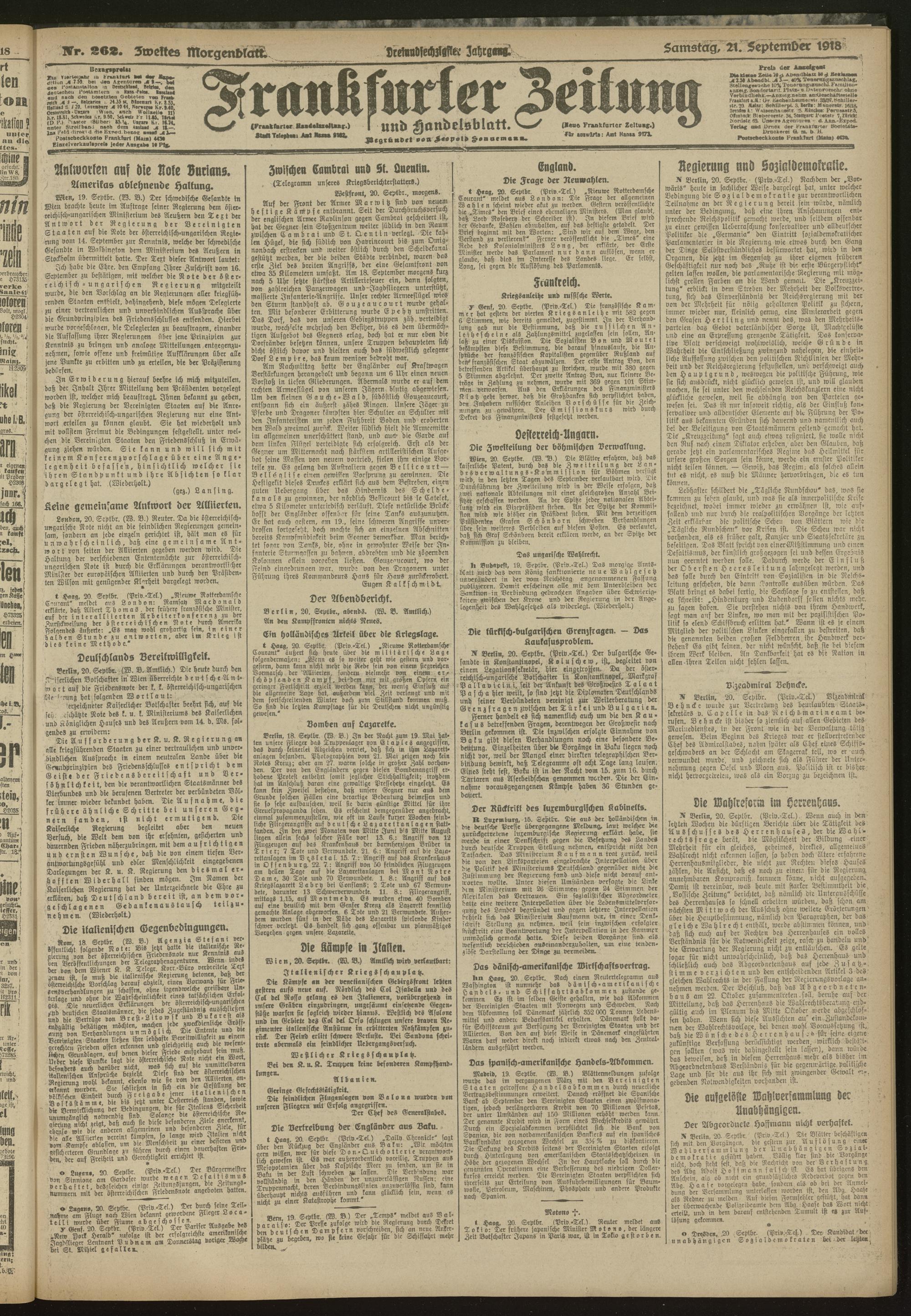 21.09.1918 = Nr. 262. Zweites Morgenblatt