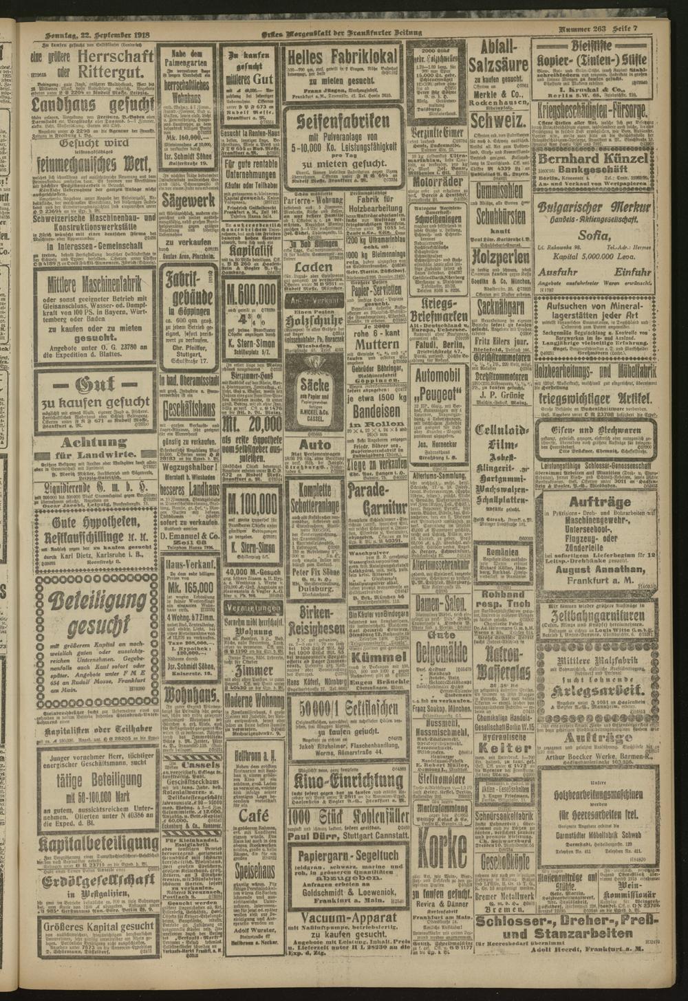 22.09.1918 = Nr. 263. Erstes Morgenblatt