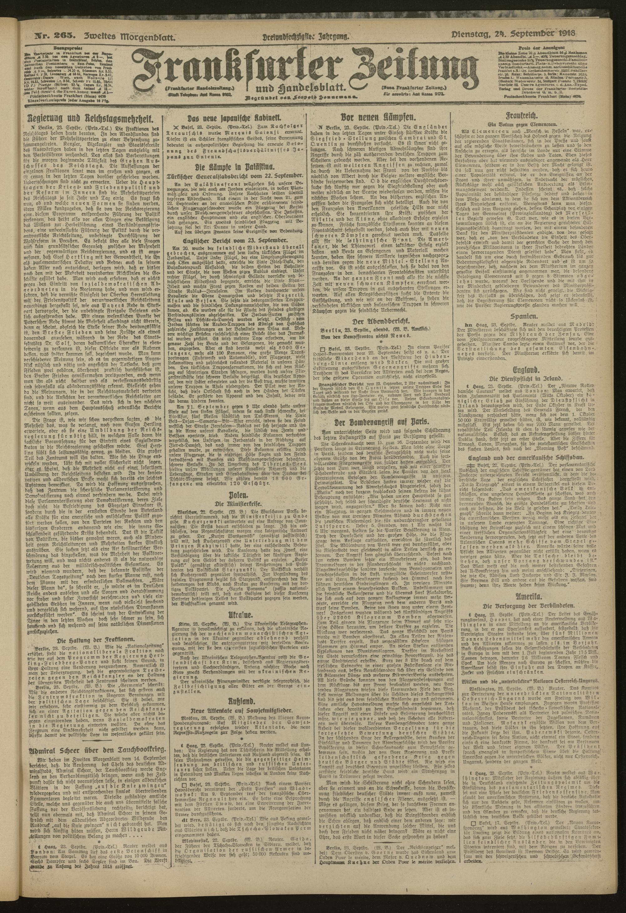 24.09.1918 = Nr. 265. Zweites Morgenblatt