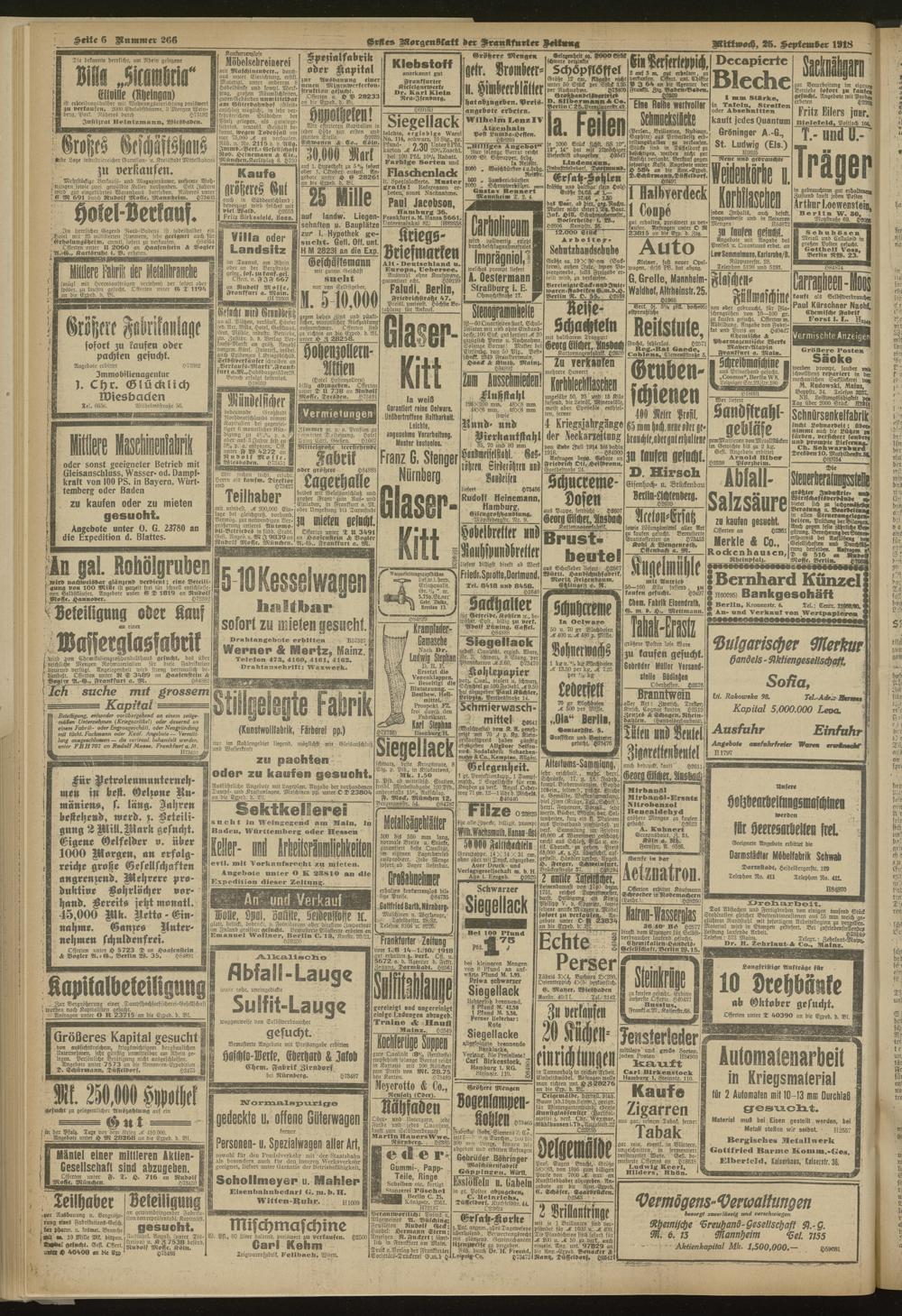 25.09.1918 = Nr. 266. Erstes Morgenblatt