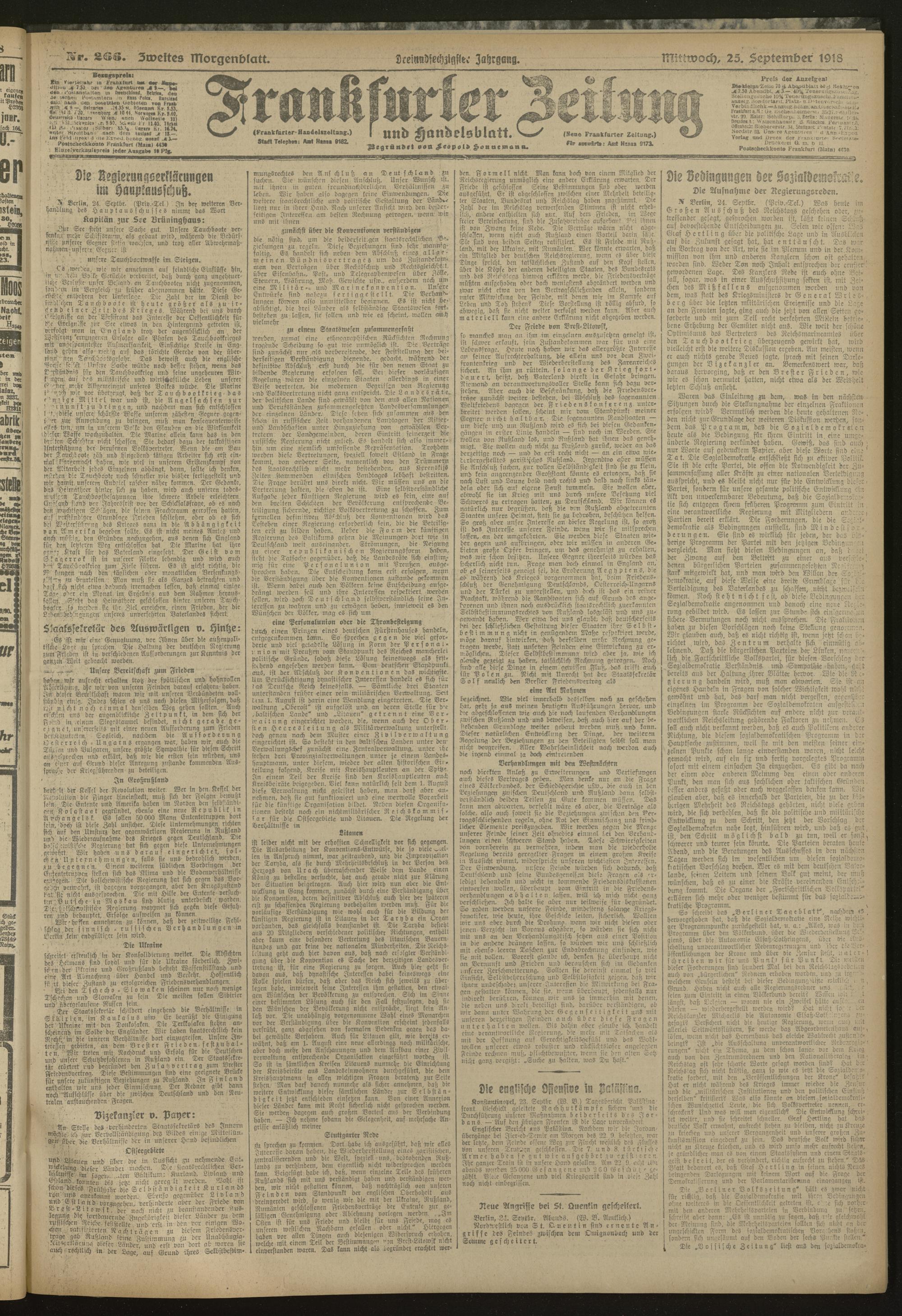 25.09.1918 = Nr. 266. Zweites Morgenblatt