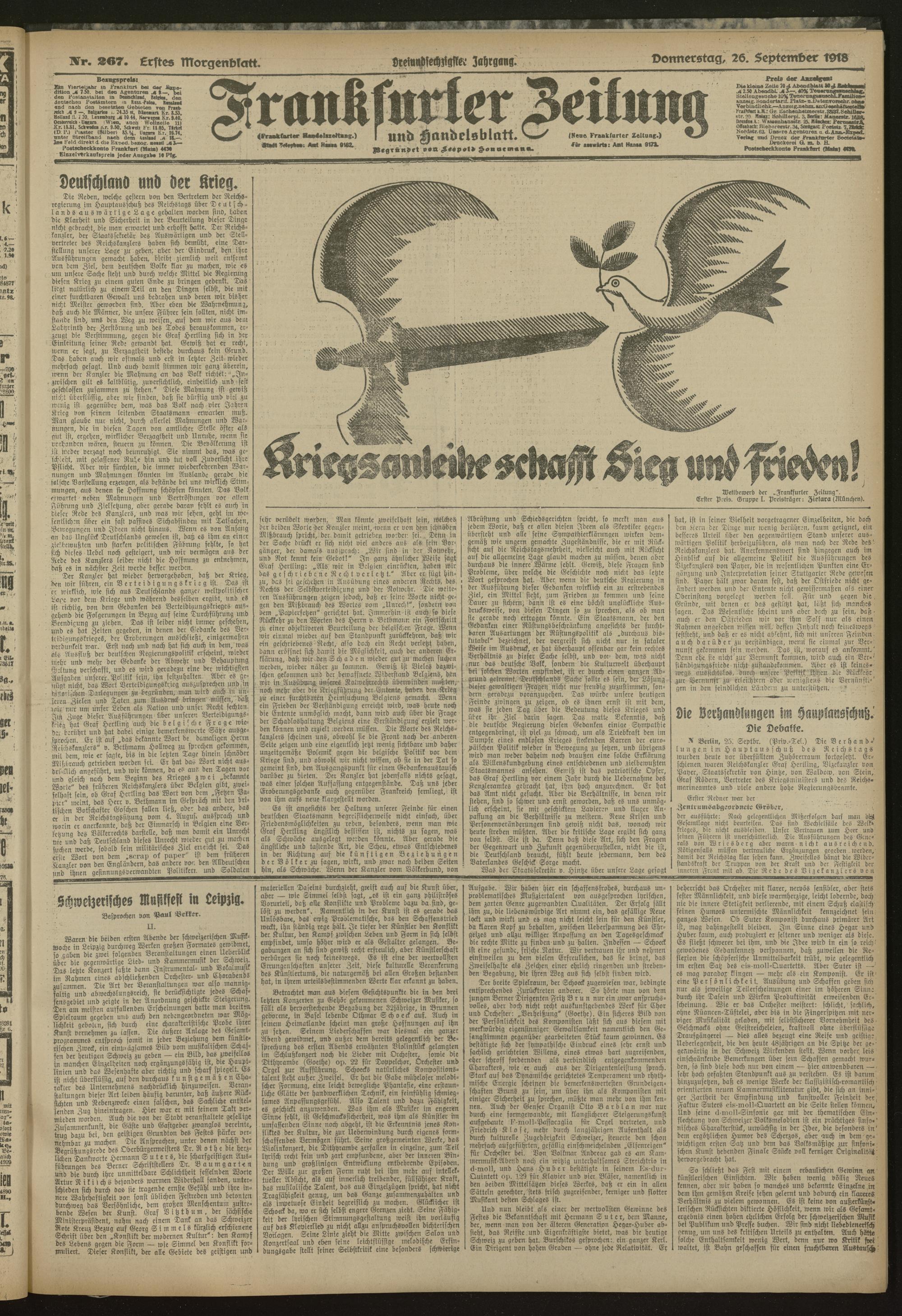 26.09.1918 = Nr. 267. Erstes Morgenblatt
