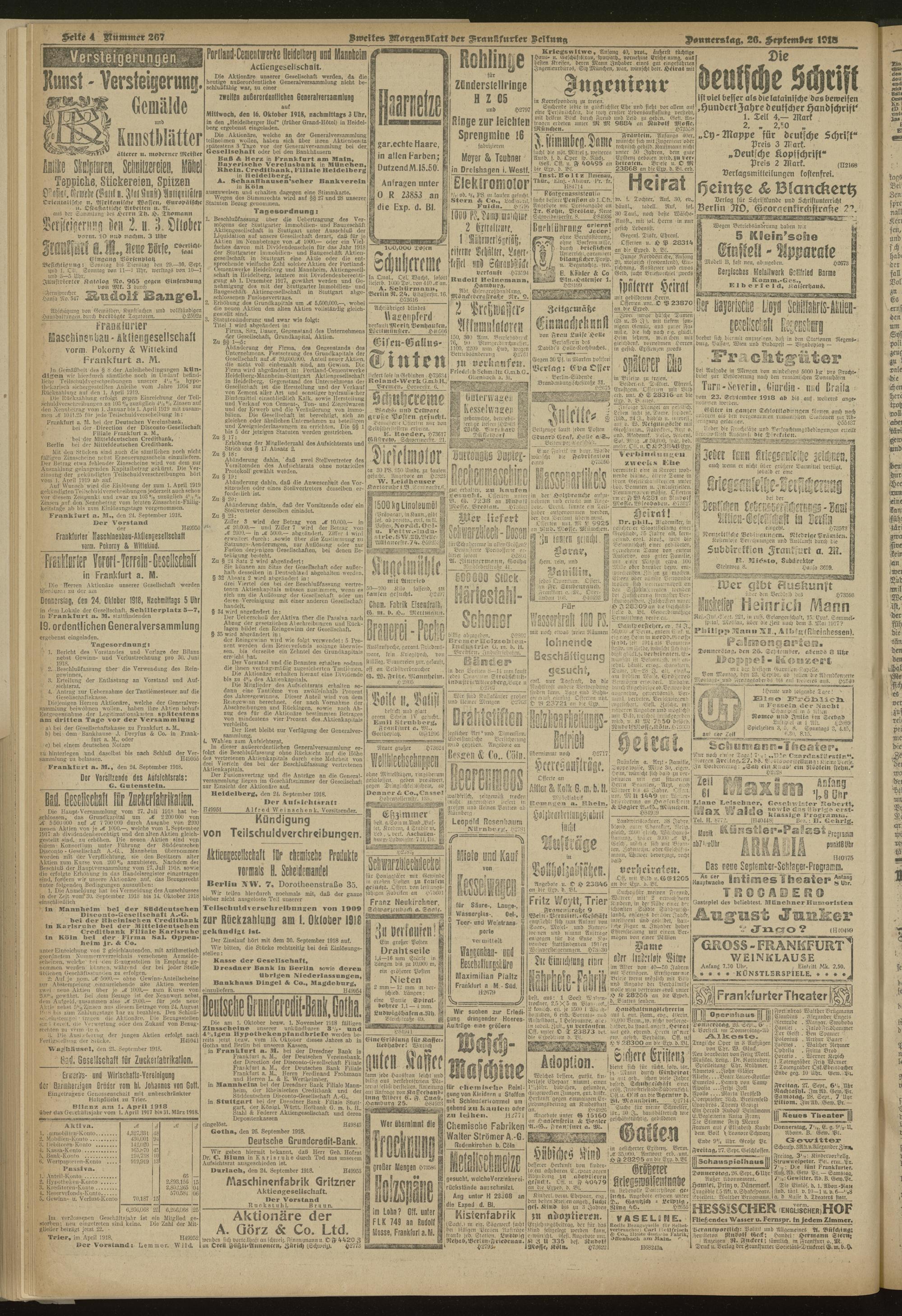 26.09.1918 = Nr. 267. Zweites Morgenblatt