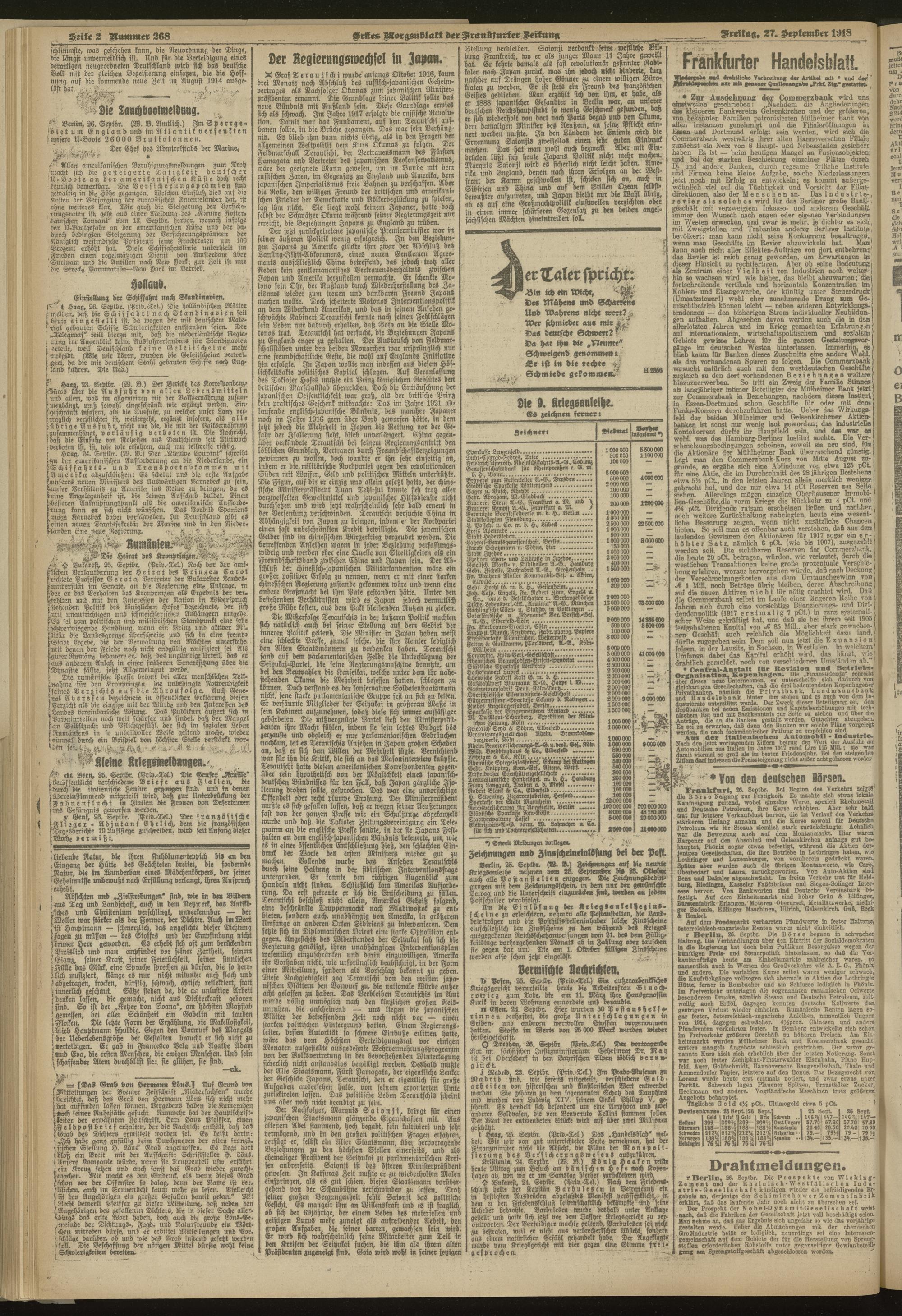 27.09.1918 = Nr. 268. Erstes Morgenblatt