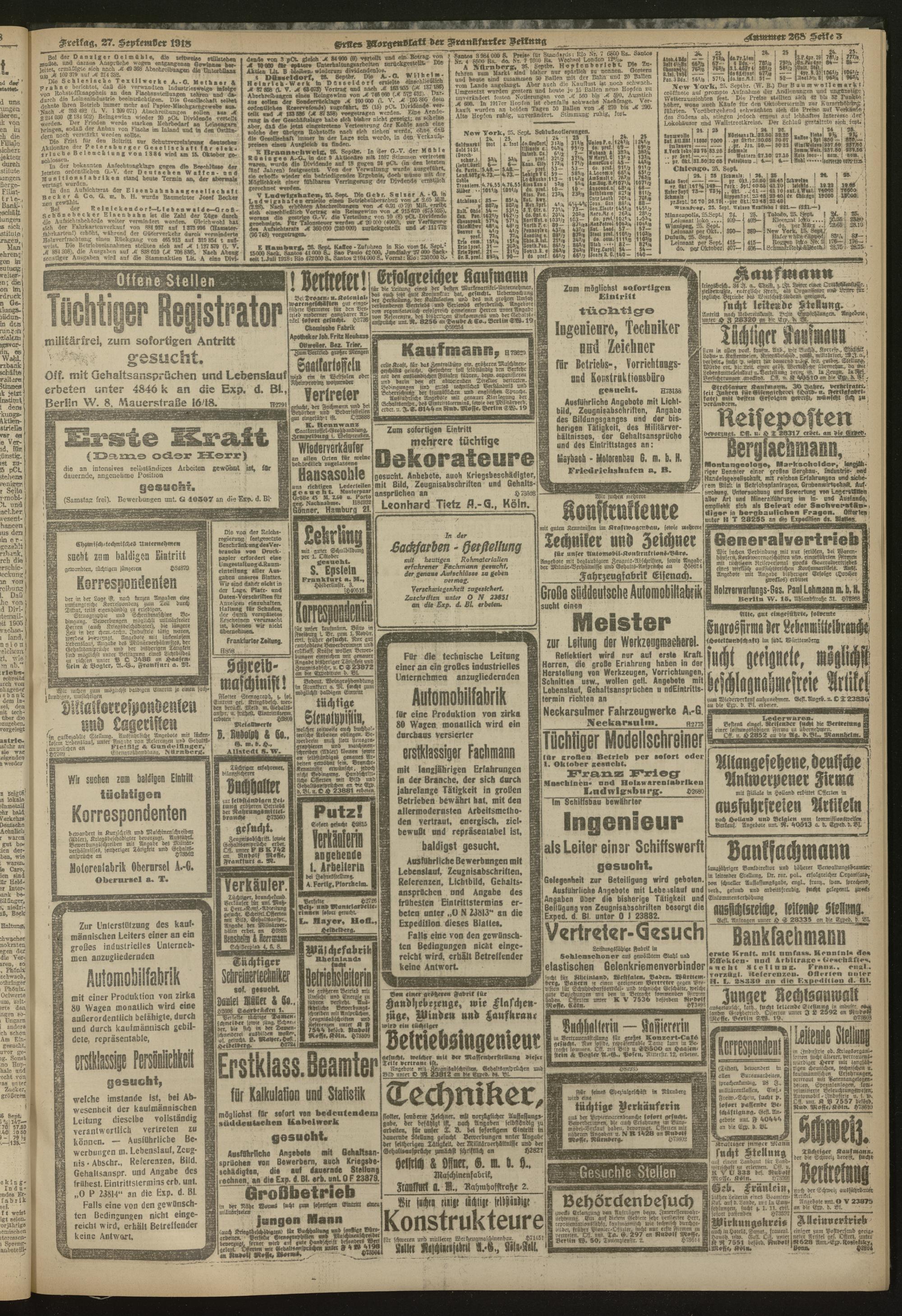 27.09.1918 = Nr. 268. Erstes Morgenblatt